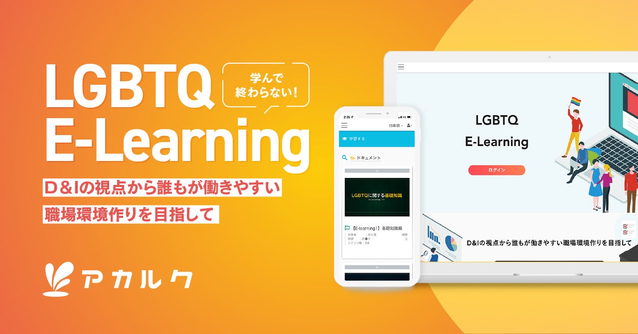 株式会社アカルク(本社:大阪府大阪市、代表取締役社長:堀川歩)は、LGBTQの基礎知識から、管理職や人事が知っておきたい内容、お客様対応におけるポイントまで盛り込んだ動画コンテンツ「学んで終わらない!LGBTQ E-Learning」を制作いたしました。