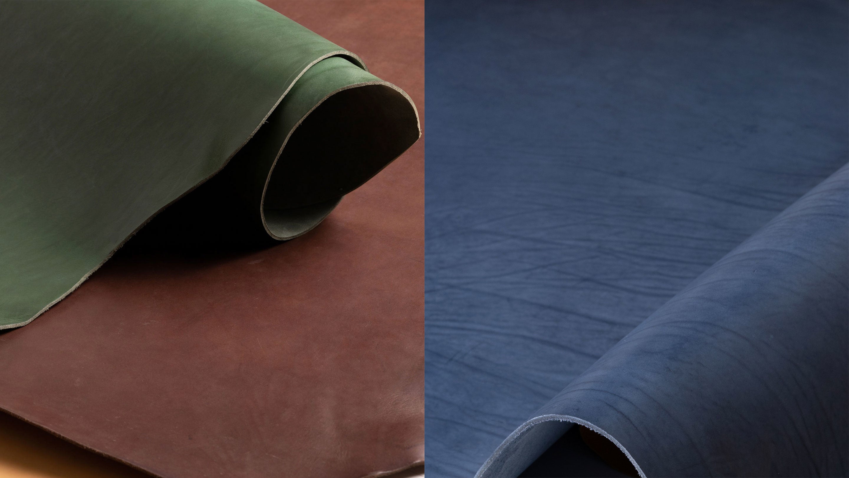 日本にも高品質な天然皮革があることをユーザーに知っていただくために、製品名には和名を、カラーにも日本の伝統色名を採用した/写真左は「Rakuda駱駝」色 右は「Tetsukon鉄紺」色