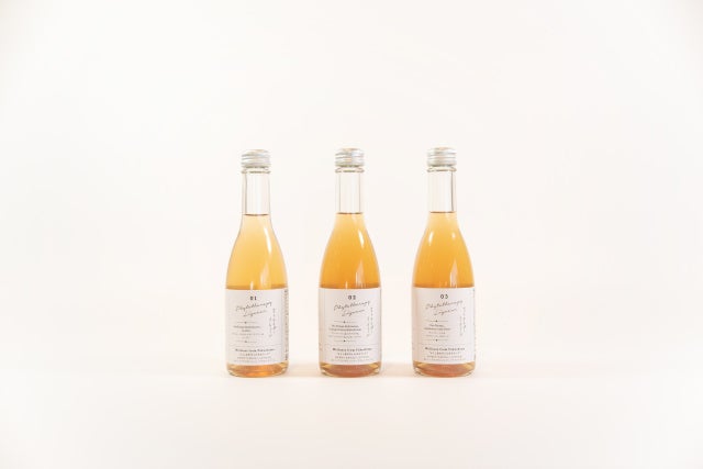 今回の商品は、このヴァンルージュをベースに、フィトテラピストの監修で、カラダにうれしいブレンドをしています。種類は3つ。この3つのコーディアルをそれぞれ発泡日本酒と合わせています。