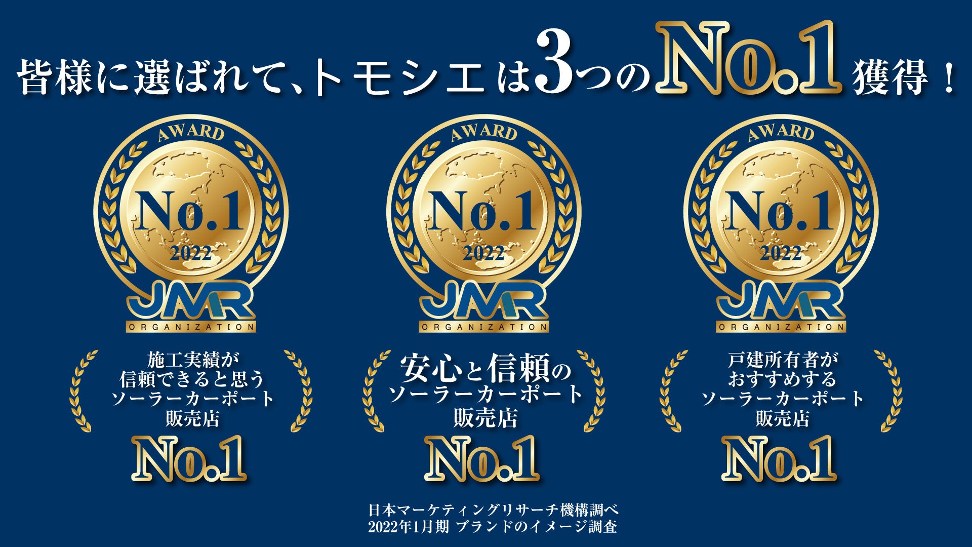 ソーラーカーポート事業を展開する「トモシエ」ブランドイメージ調査において、3つのNo.1を取得!
