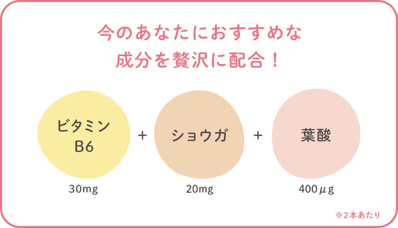 このつわノンは、ビタミンB6、ショウガだけでなく、赤ちゃんの健やかな成長のために必要な葉酸も入っています。