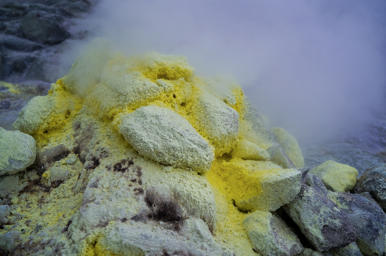 1500以上の噴気孔があるアトサヌプリ(硫黄山)。近づいて針状結晶を観察できる。