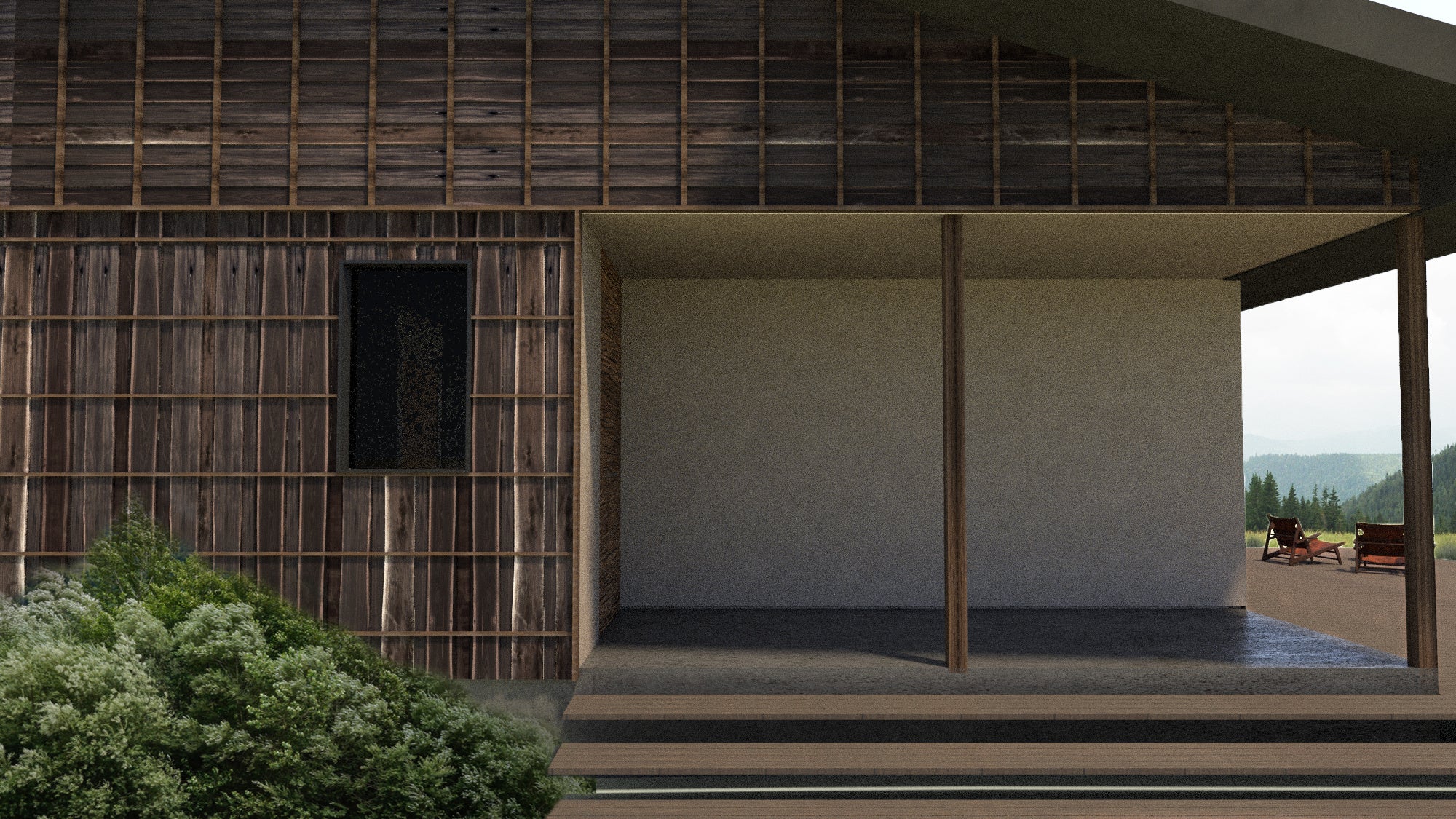 自然環境を考えること、自然と付き合うということはきっと、そうした私達の考え方を少し変えることなのだという気づきをこの宿の佇まいに込めて設計を行った。
