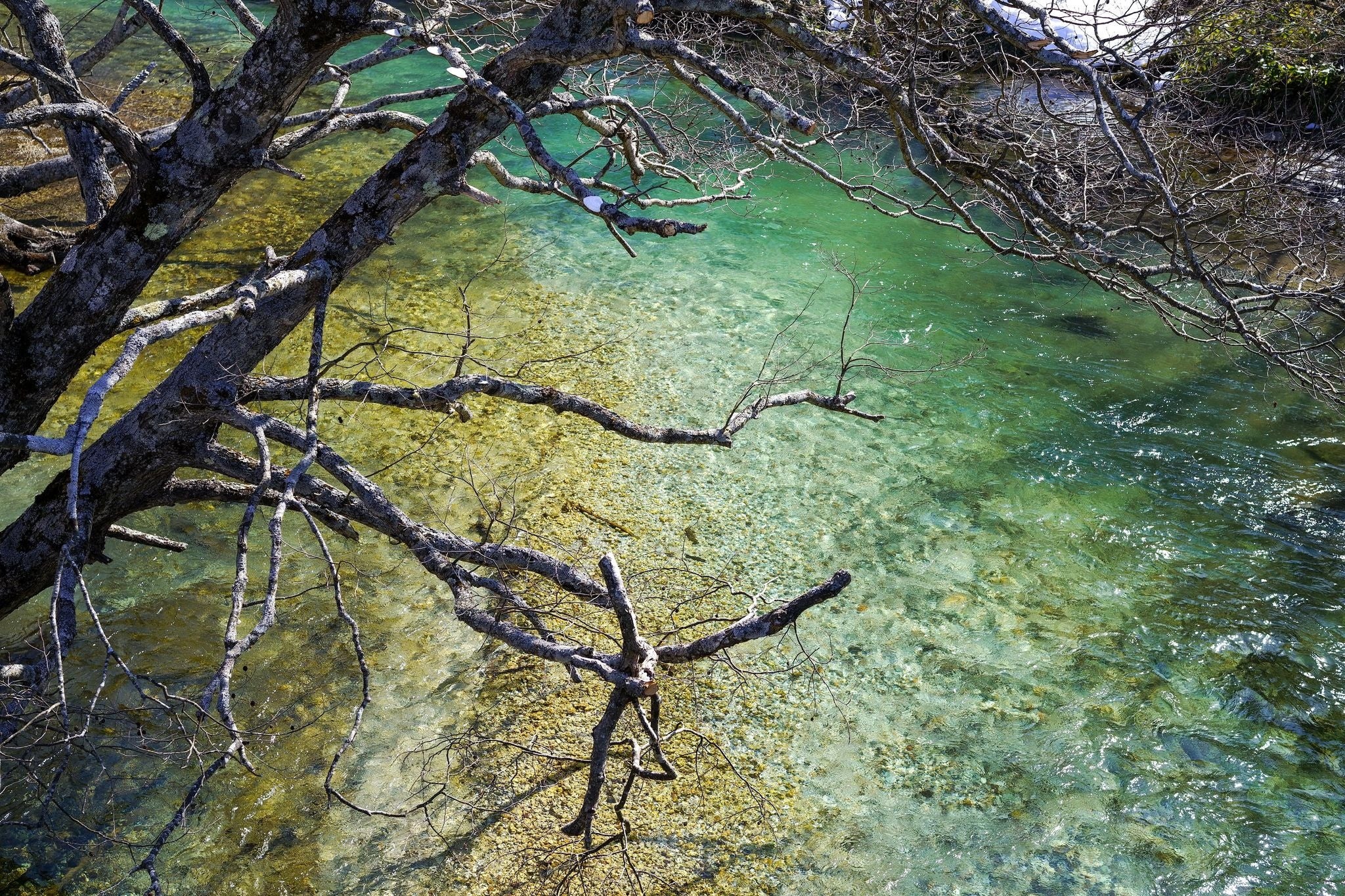 釧路川源流の春。源流部はとても透明度が高い。