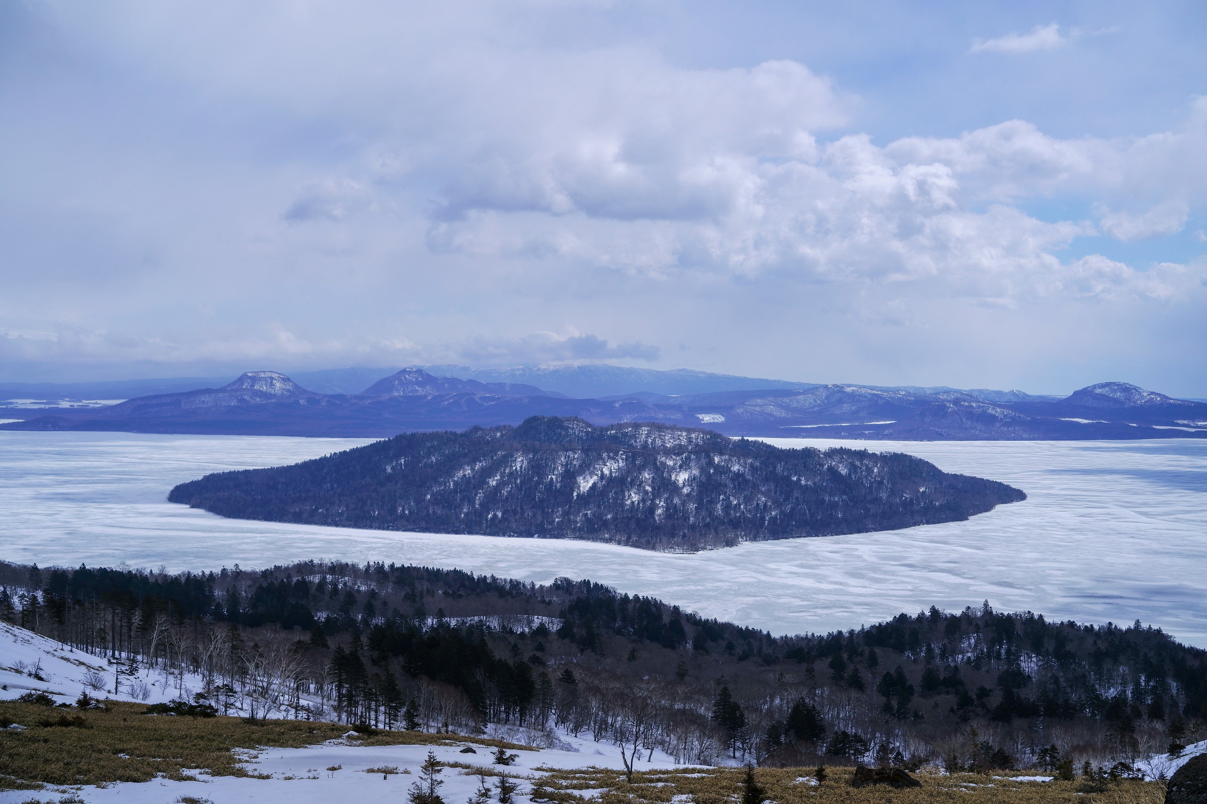 屈斜路湖は全面結氷する湖で日本で最も大きく、美幌峠からの景色は圧巻だ。