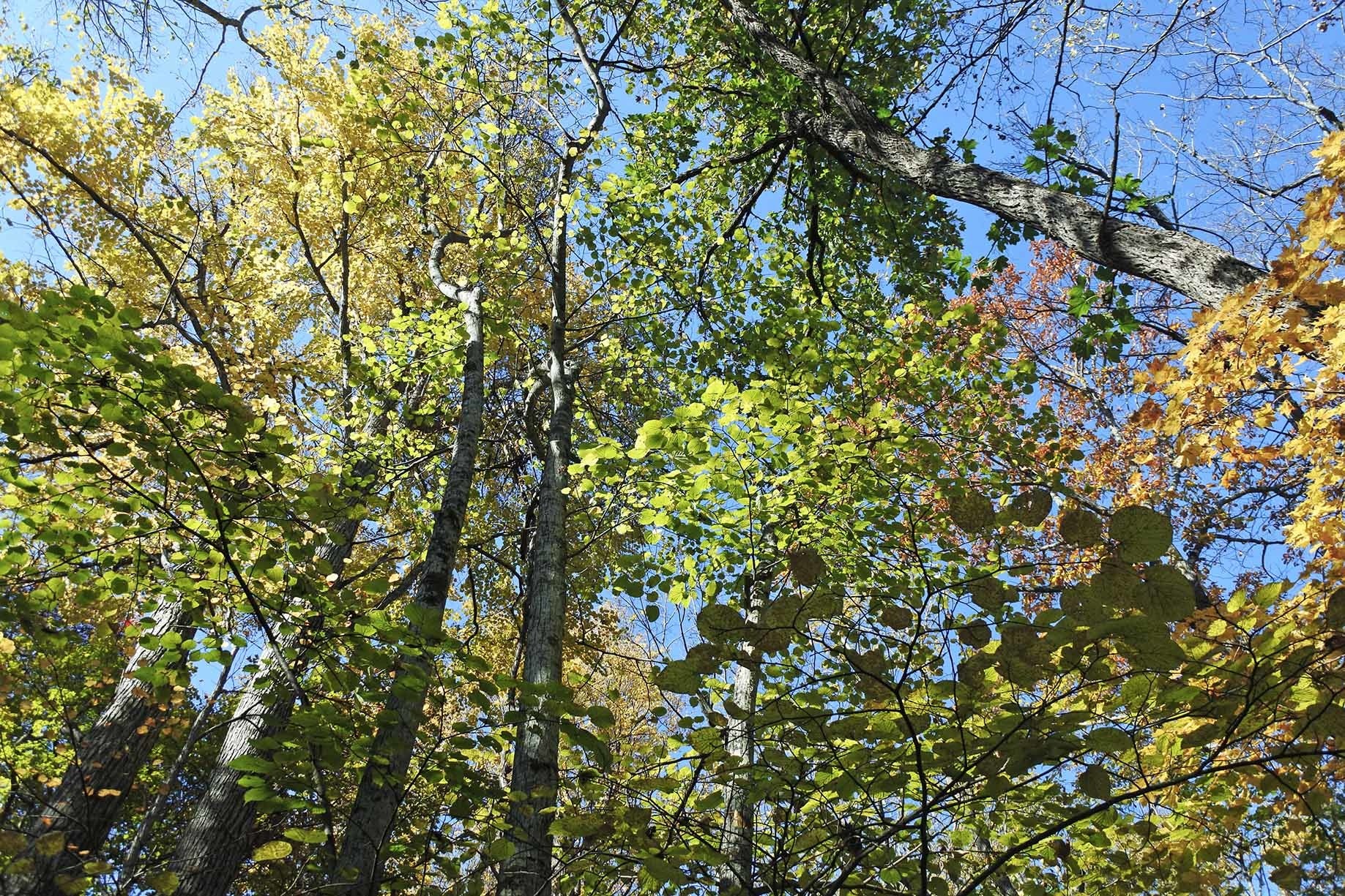 左からカツラ、ヤマナラシ、イタヤカエデなど、次々に紅葉していく樹々が美しい。