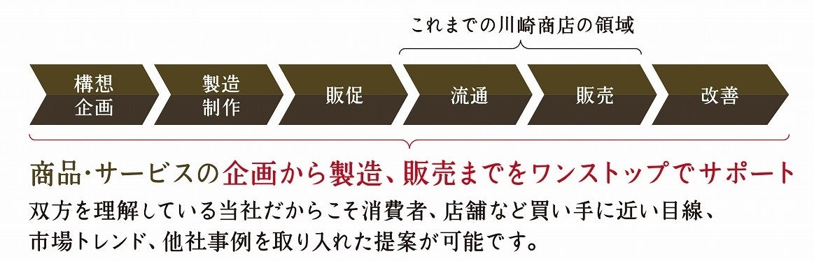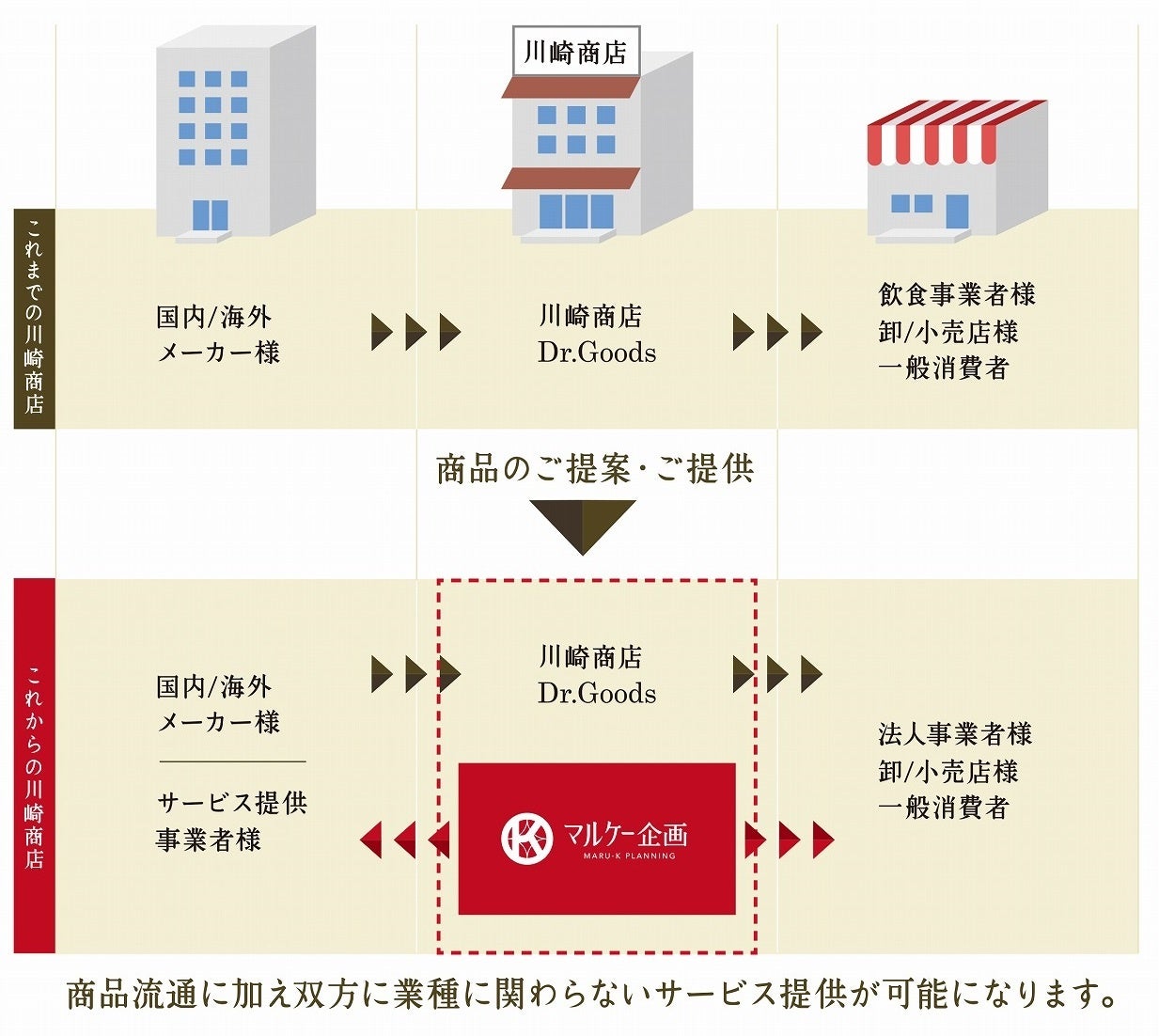 マルケー企画株式会社を設立したことで、これまで川崎商店がお客様に提供してきた「商品価値」とあわせて「サービス価値」の提供が可能になりました。
