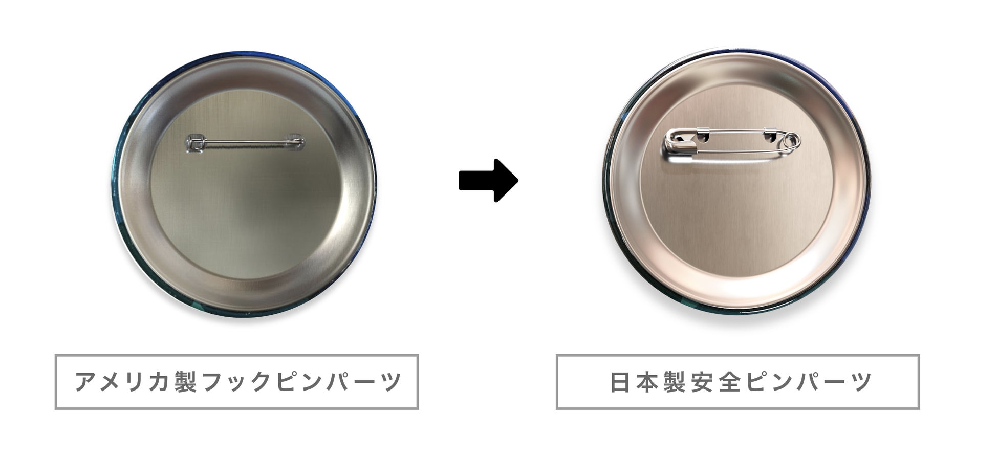 安全ピンパーツの缶バッジは従来もありました。