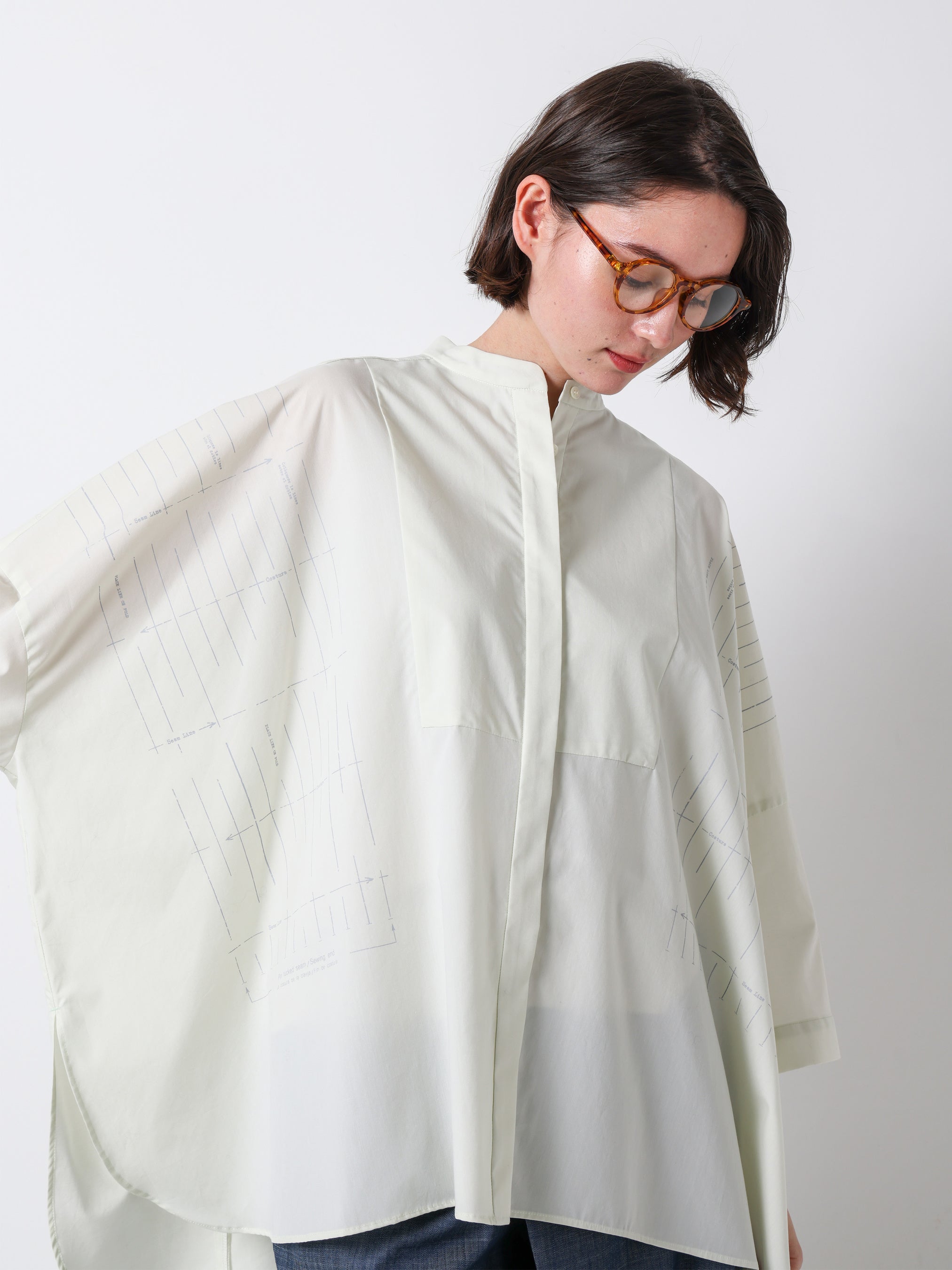 納品されるプリントシャツには、古きものを受け継ぐという想いや憧れから、アンティークの型紙にインスピレーションを得たプリントを施しています。羽織るだけで様になるオーバーサイズデザイン。