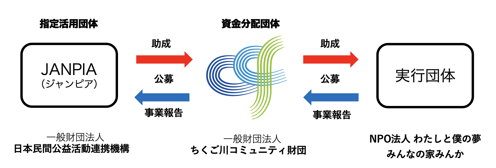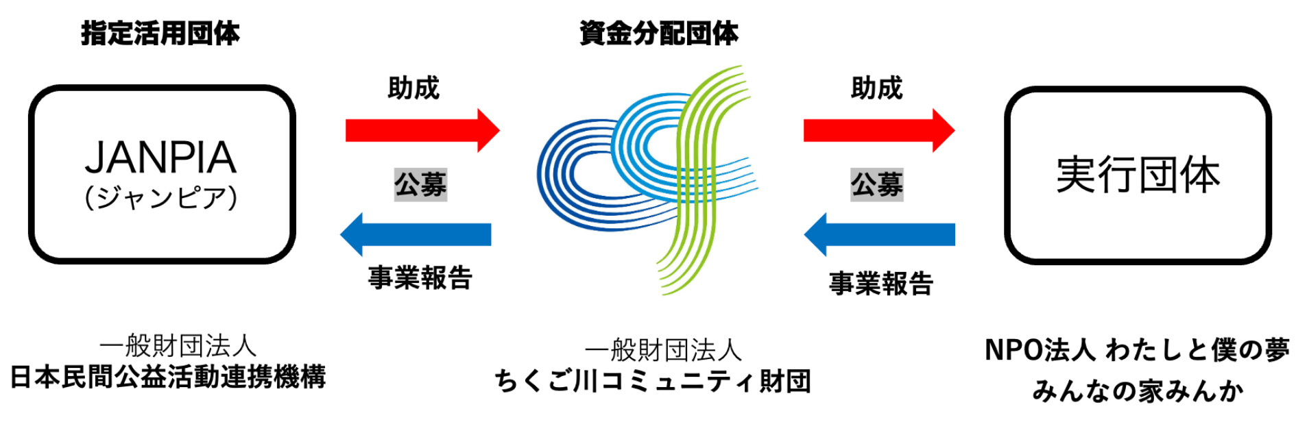 公募により2つの実行団体(NPO法人わたしと僕の夢、みんなの家みんか)を採択し、「困難を抱える子ども若者の孤立解消と育成」をテーマに、2021年4月より3年間にわたる事業(総事業費:約7,000万円)がスタートしました。