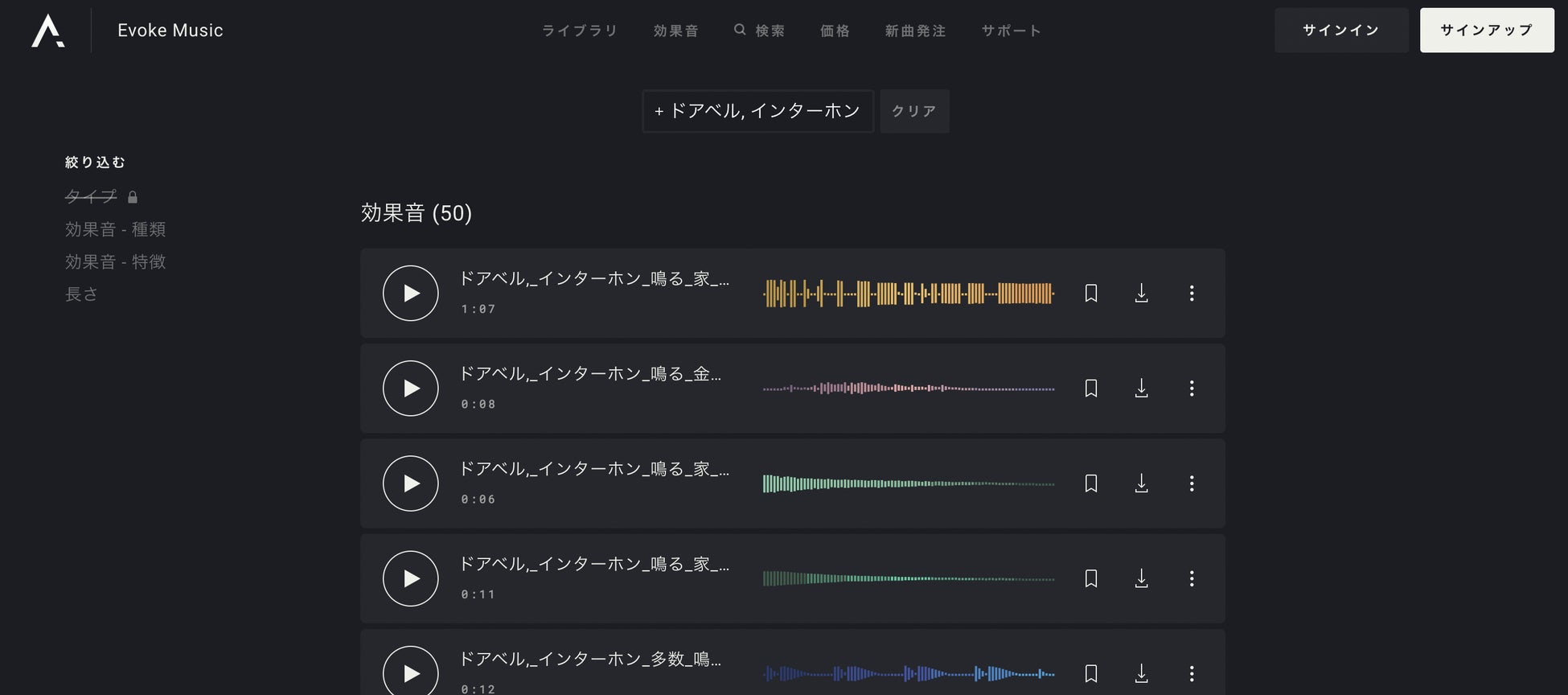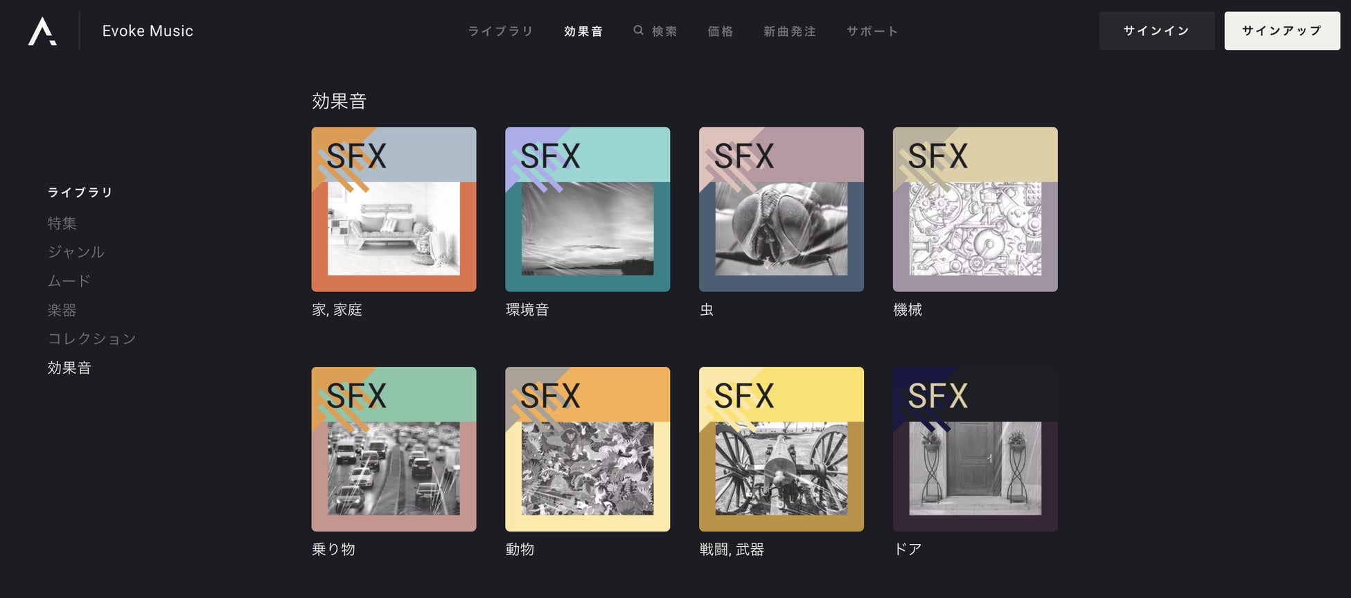 すべての効果音一覧はこちら: https://evokemusic.ai/ja/music/sfx