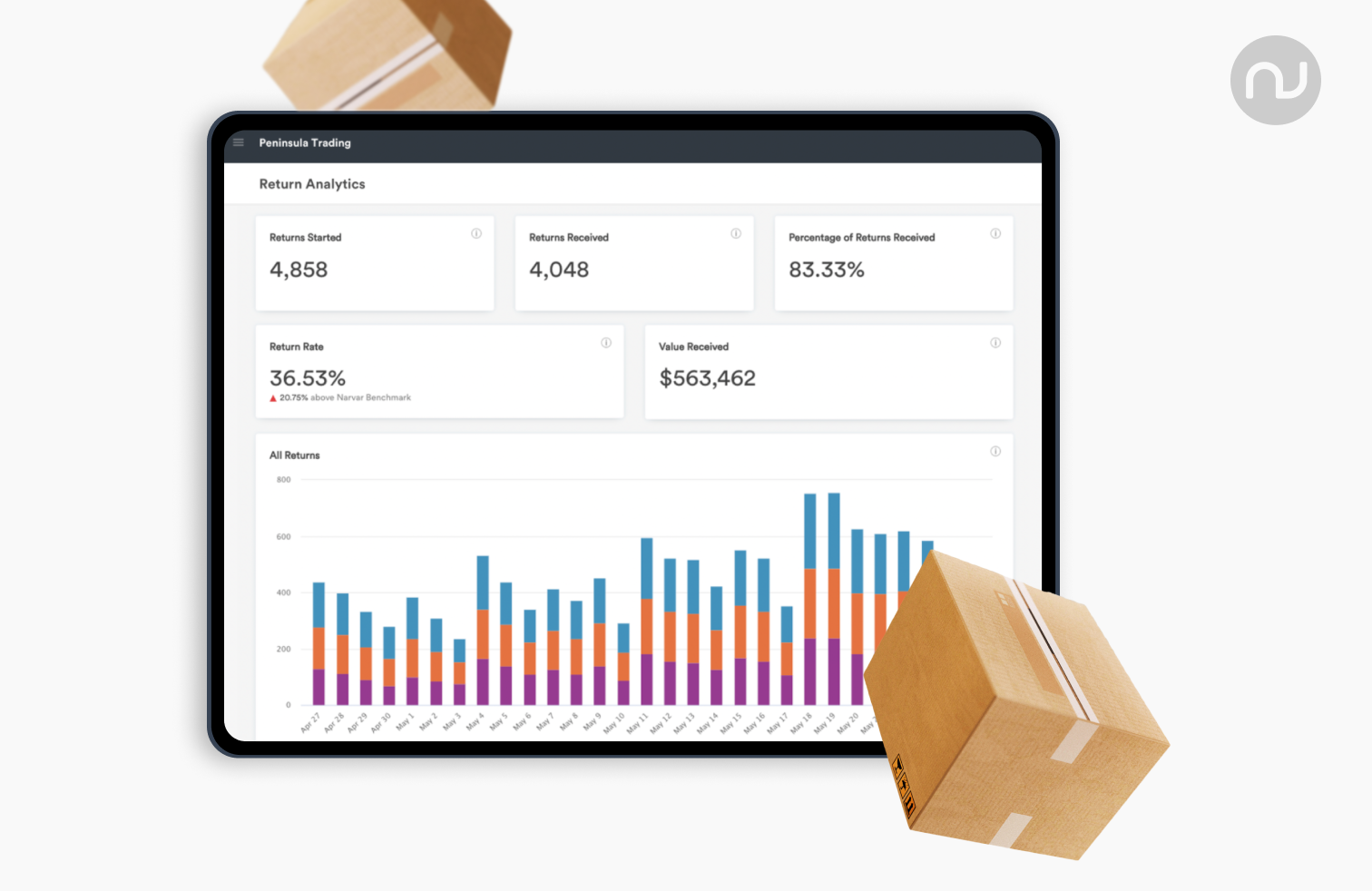 消費者向けの利便性の向上に加えて、Narvarの返品はEC事業者にも大きな利益となります。マニュアルで管理されている返品業務を自動化し、社内業務とコストの削減に貢献します。また、返品するお客様の住所や返品理由などに応じて、返品先を倉庫、店舗、品質管理部門などに柔軟に設定できるため、在庫管理や商品管理の効率化にも役立ちます。お客様の返品傾向や返品理由などは、自動的に分析され管理ページで表示されるので、商品ページの改善や商品開発にも貢献し、返品を将来の売上拡大につなげることができます。