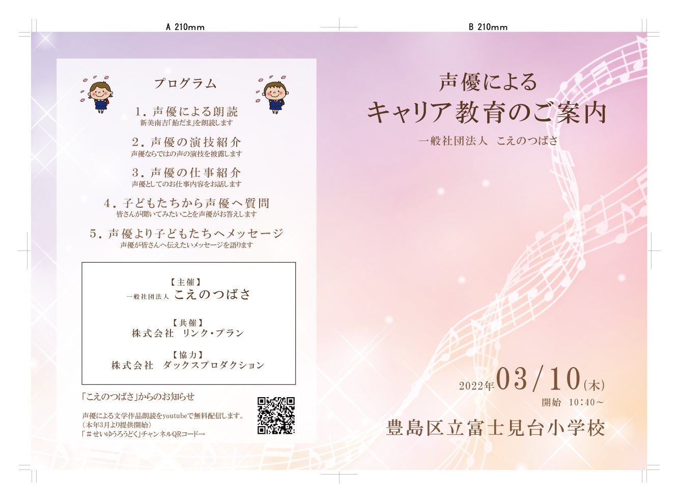(主催:一般社団法人こえのつばさ、共催:株式会社リンク・プラン、協力:株式会社ダックスプロダクション、後援:豊島区教育委員会(申請中))