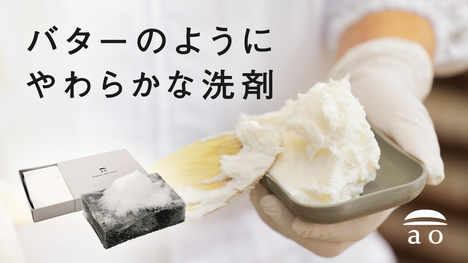 キッチンブランド「ao」のコンセプトは「less is more(少ないほど豊かである)」。⼈にも環境にも優しいサスティナブルな商品を研究開発し、ついにオリジナル商品(食器用固形洗剤) が完成しました。