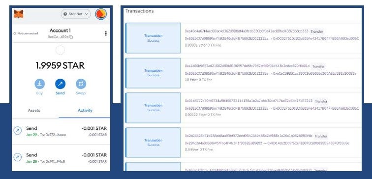 STAR Netは、MetamaskなどのWalletとの連動と、イーサリアムとSTAR Token間で取引ができるBridge、そしてすべての取引を検索できるExploreとして、STARNET Scanサービスを提供又はサポートします。