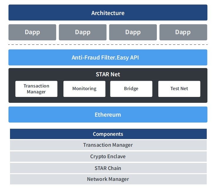このAF-Engineはブロックチェーンの外で独立的に運営することによって、ブロックチェーン開発者だけでなく、インターネットを使うあらゆる開発者や個人、法人が使用できるようにAPIとして提供すしています。STAR Netは、MetamaskなどのWalletとの連動と、イーサリアムとSTAR Token間で取引ができるBridge、そしてすべての取引を検索できるExploreとして、STARNET Scanサービスを提供又はサポートします。