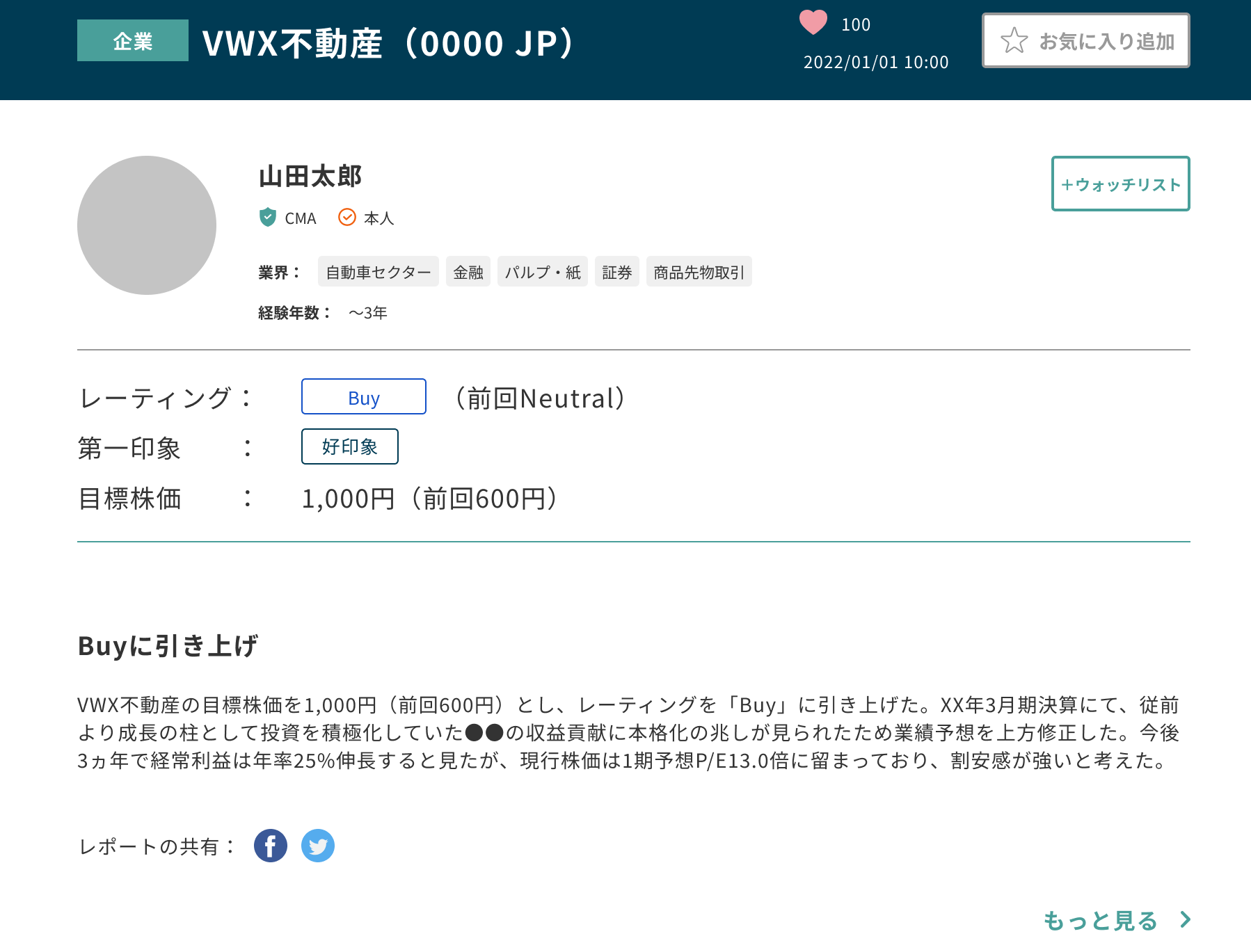 - 原則無料無登録(フリーアナリストレポート及びコメント投稿欄の閲覧など一部機能)