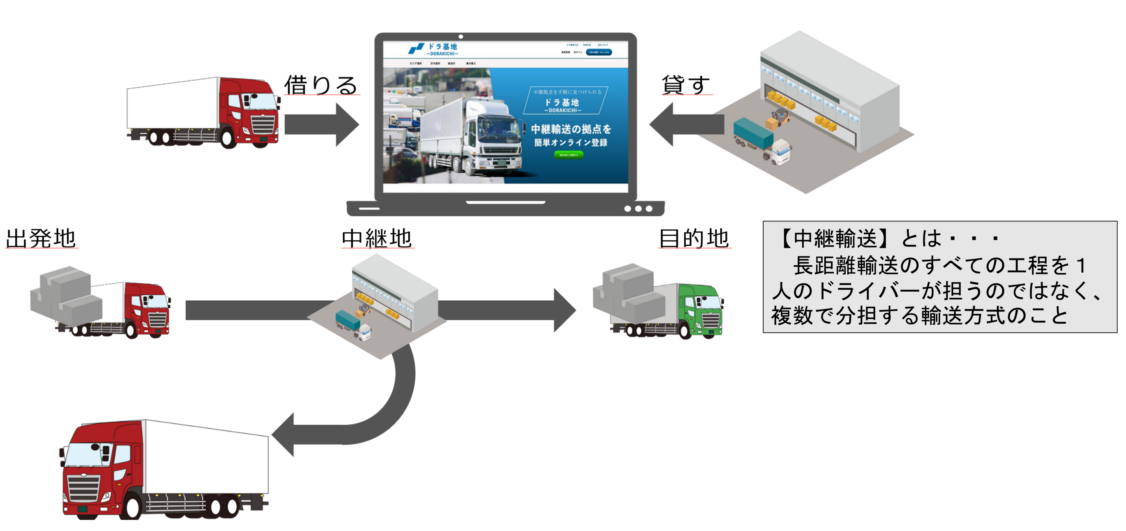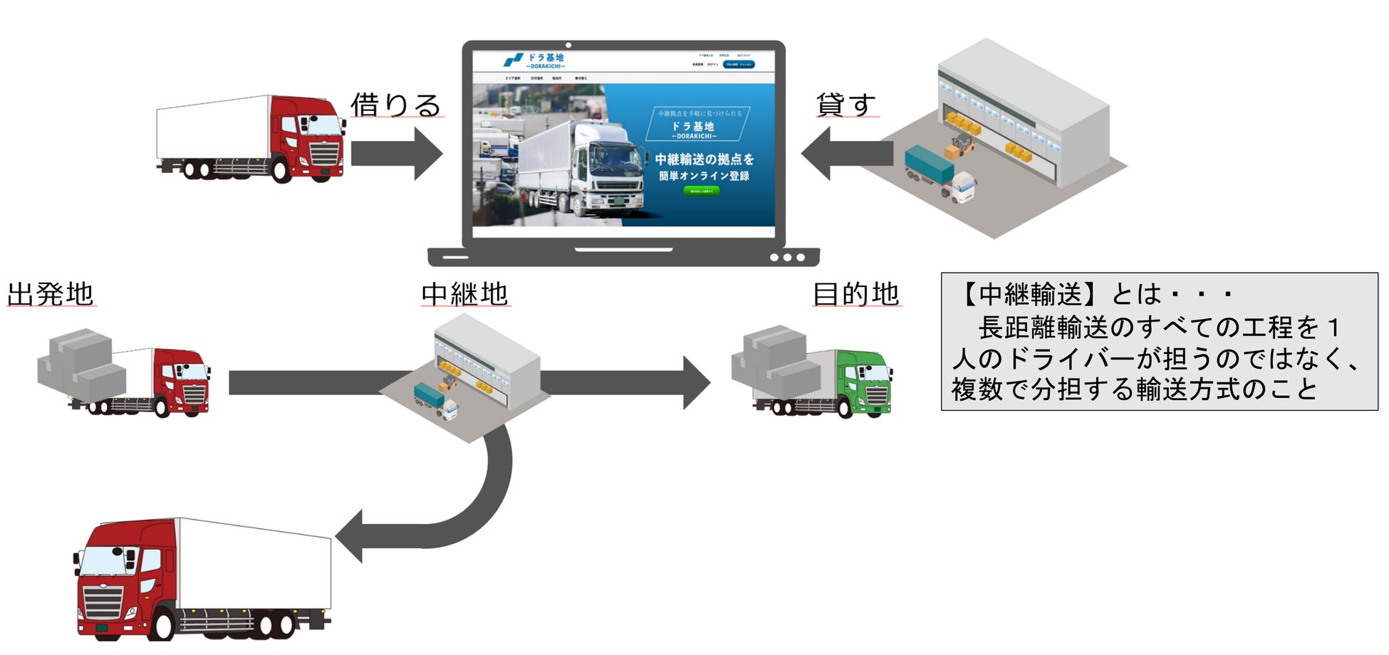 株式会社スペース(本社:愛知県蒲郡市、代表取締役:村井美映)は、運送会社を中継地として活用し、全国一斉に中継輸送を実現するサービス「ドラ基地」を4月1日にβ版のリリースいたしますので、お知らせをします。