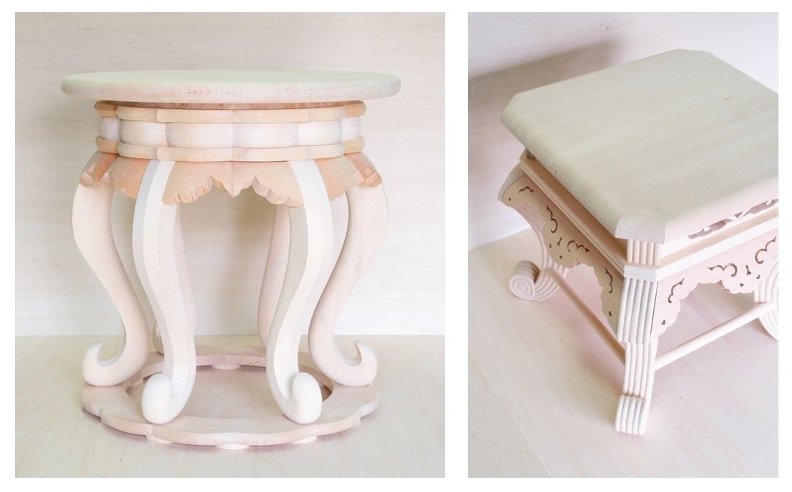 寺院の御本尊を安置する御宮殿や、御須弥壇などを手がける宮殿師のウナテ工房(京都府京都市)は、古くから伝承されてきた宮殿師の技を、未来へと受け継ぐ新しいかたちとして、生活者の日常を上質に彩る手仕事の製品を展開します。木と向き合い、小さな部品ひとつひとつに命を吹き込み形を作り上げていく宮殿師だからこそ生み出せる逸品を目指し、テーブルや椅子をはじめ、ひな人形、ティッシュケース、カトラリーにいたるまで、毎日の生活の中で、日本の伝統と木のぬくもりを感じられる製品を製作しました。