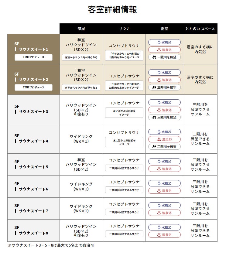 全客室のサウナは、ととのえ親方プロデュース!最上階の2部屋は部屋ごとプロデュース!