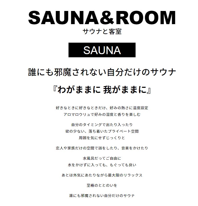 全客室にプライベートサウナを完備し、心身ともにととえる場所に!