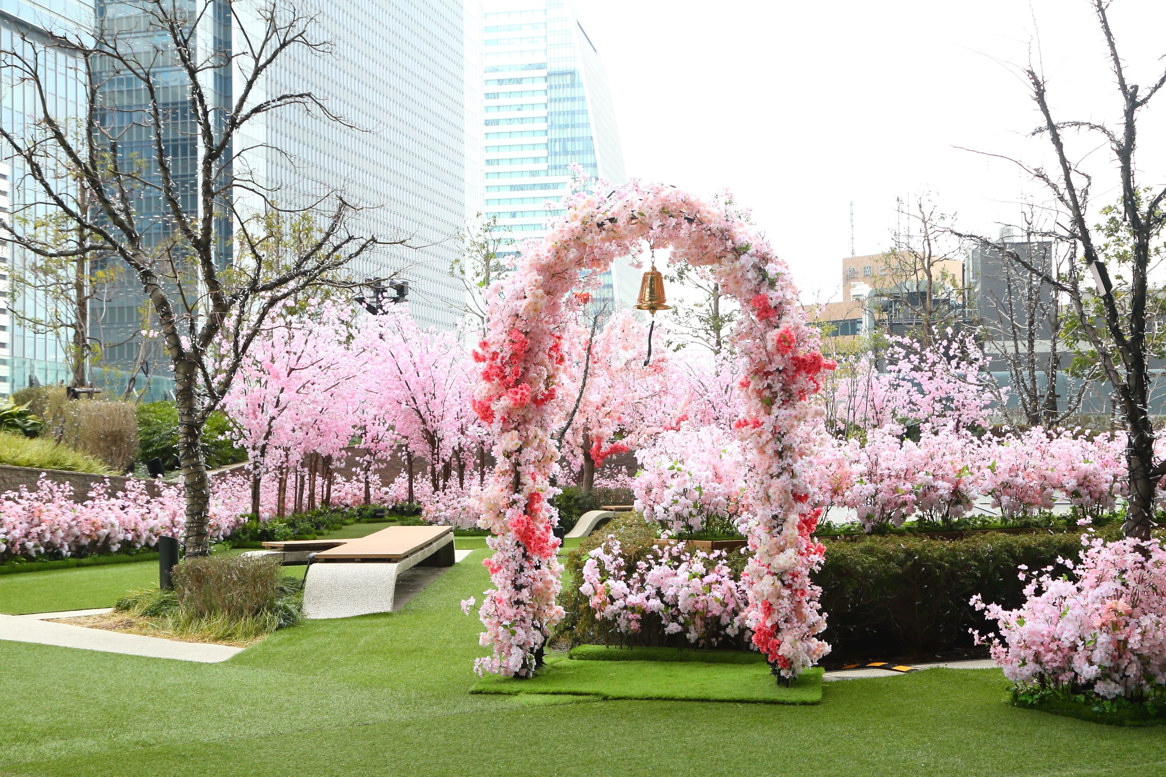 都会でお花見!6周年の感謝を込めて、春を感じる桜でいっぱいの華やかなスカイガーデンをご用意。