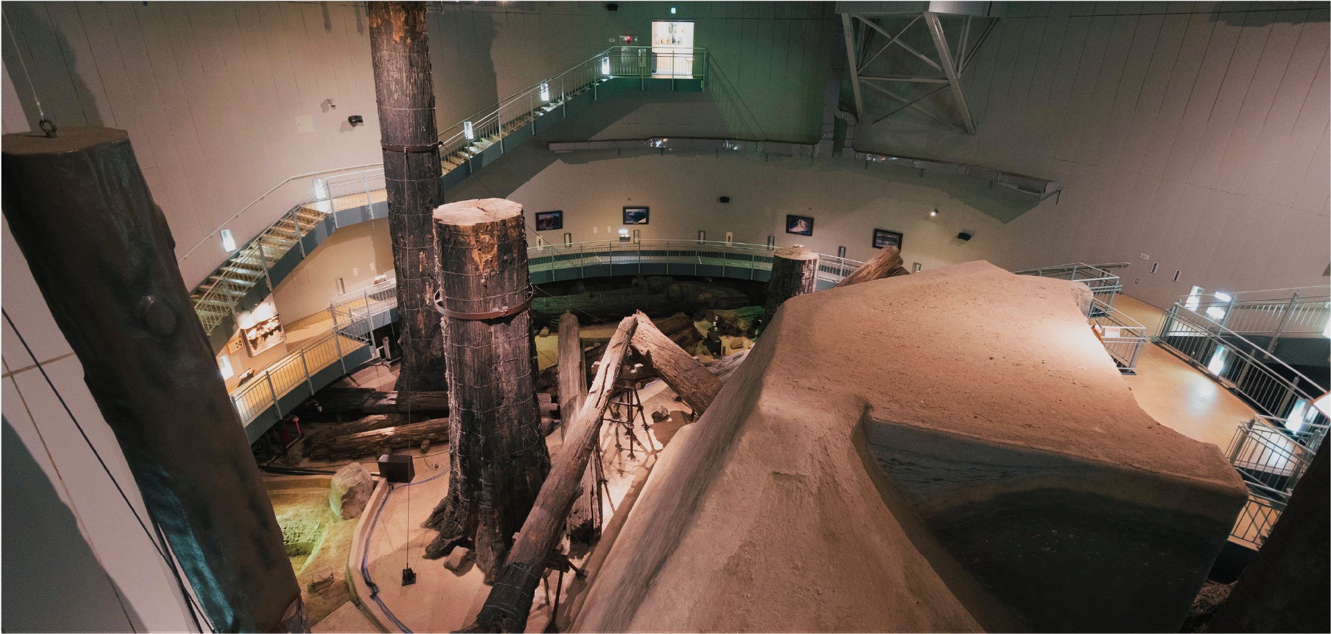 三瓶山の噴火で地中深くに埋まった縄文時代の木々が、悠久の時を超え、当時のままの姿を現しているのです。