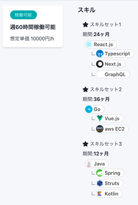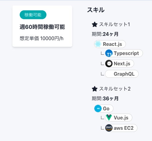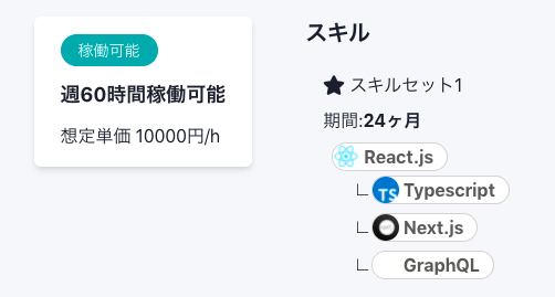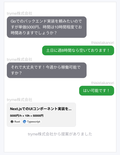 例えば職務経歴書を整理したり面談回数が多かったりとITエンジニアが案件を獲得する際には大きな労力がかかります。trymeは簡単なプロフィール入力のあと、企業と面談をせずにチャットでコミュニケーションを取ることで案件のオファーを受けることができるITエンジニア限定の副業マッチングサービスです。