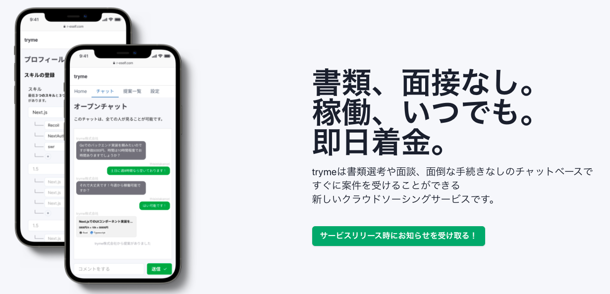 【チャットで案件獲得!】ITエンジニア限定の副業マッチングサービス「tryme」β版をリリース!