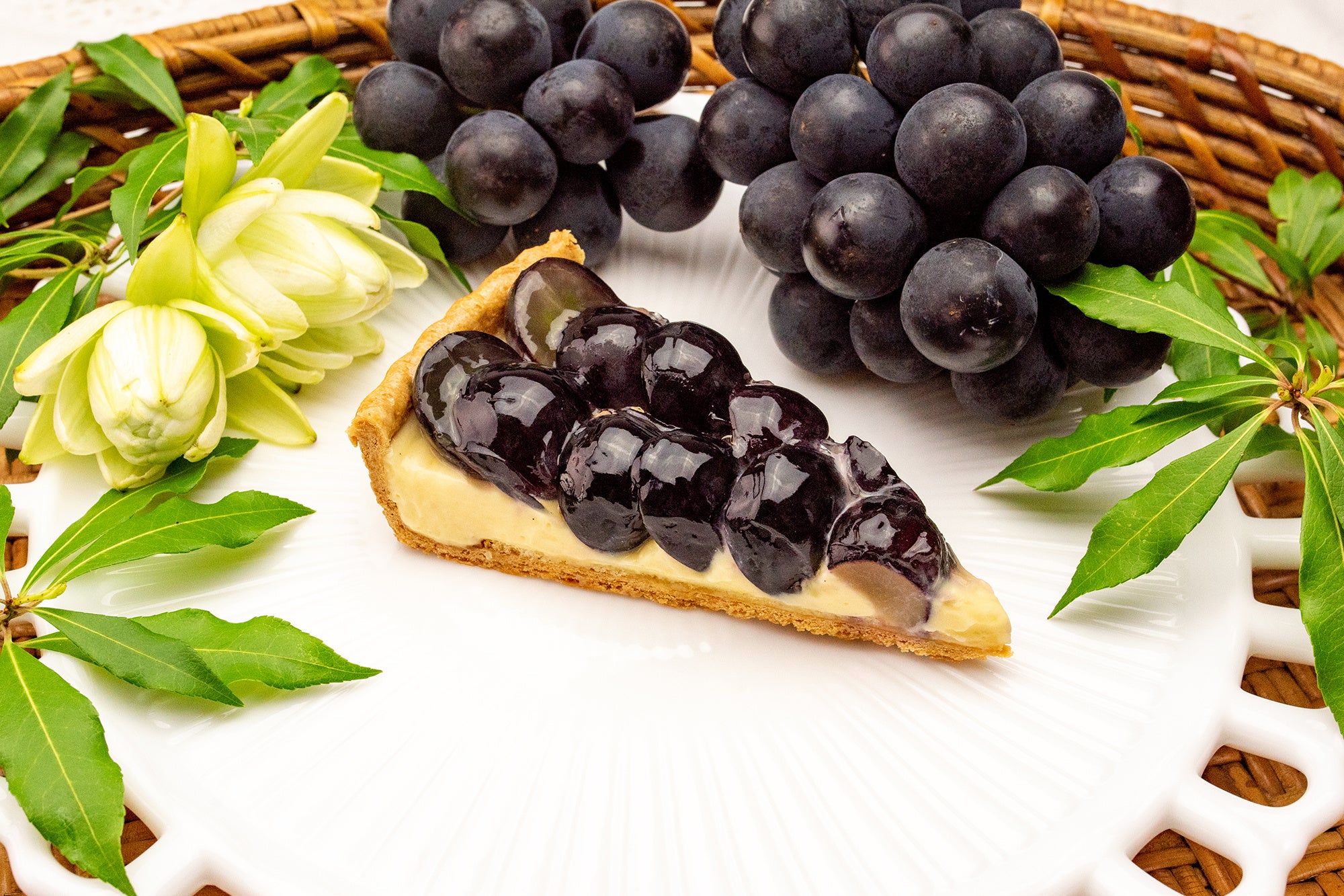 ニュージーランドの豊かな自然環境の中で育てられた裏旬巨峰は皮ごと食べられることができ、その魅力を存分に楽しんでいただける、シンプルな組み合わせのタルトになっております。