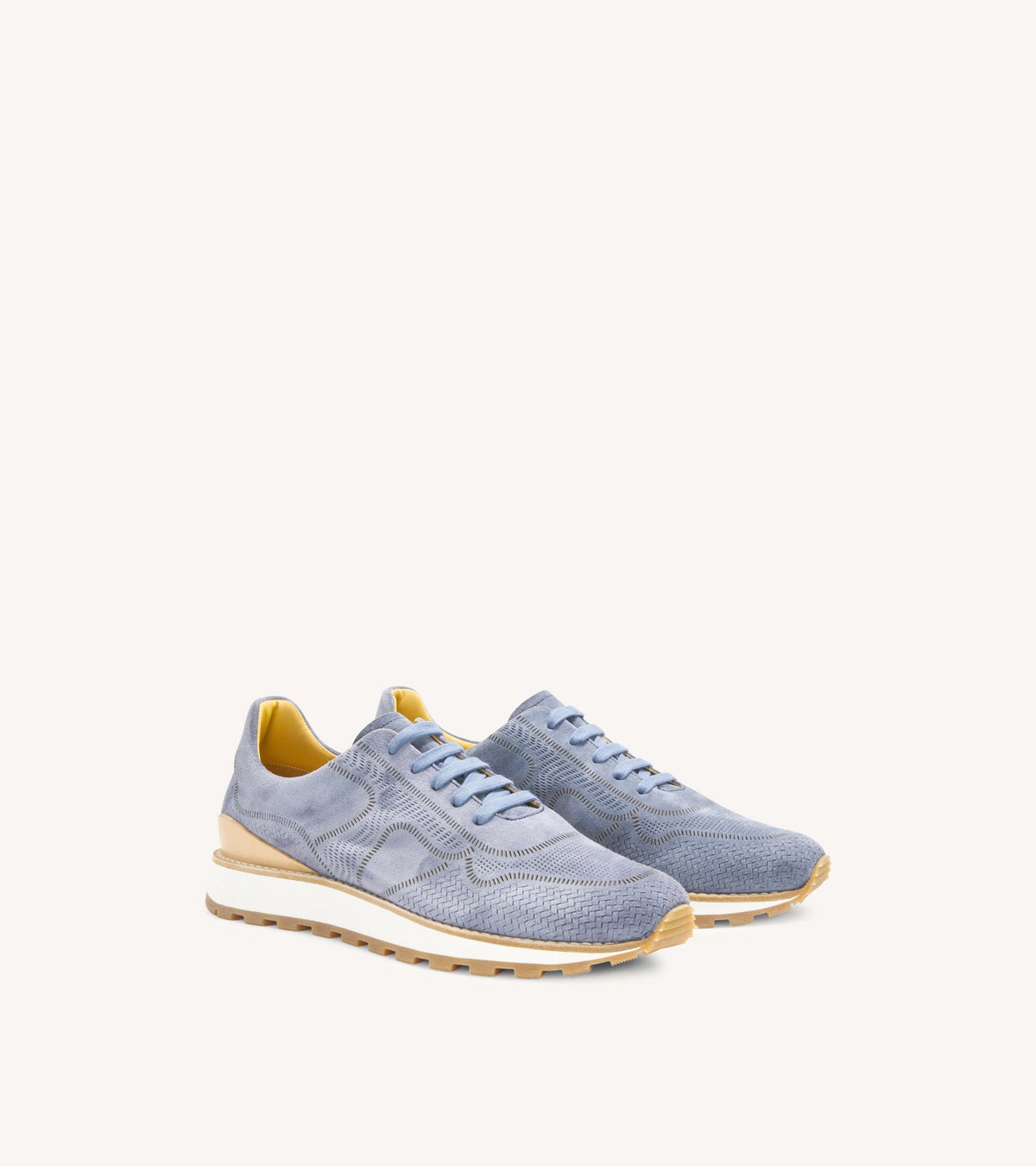 Moena Laser-Cut Sneakerは、特別に選ばれた素材で作られた軽くて柔軟な構造と、人間工学に基づいたデザイン。足を包み込む柔らかく通気性のあるアッパーが特徴で、心地のいいフィット感を提供します。レーザーカット技術を採用した「ローズソーン」パターンは、横方向の「T」エンブレム内と上部プロファイルに沿ってトレースされています。これに加えて、つま先辺りと背面位置に複雑な「織り」のような生み出すスタンプ加工と、前面にマイクロパンチングパターンを採用しています。