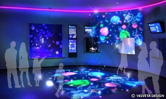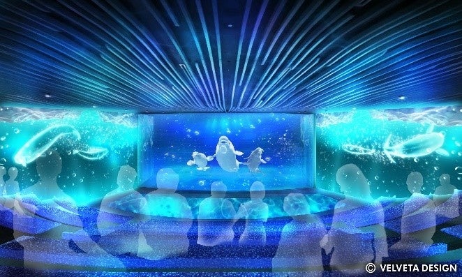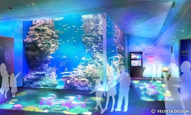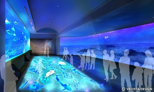 各エリアでは、展示されている生き物を神話の世界とリンクさせ、光をふんだんに使った幻想的な空間を演出。来館者が美しい海の世界を、ひとつのストーリーの中で楽しみながら知り、その世界の中にいるかのような体験によって、自然の美しさを身近に感じることができるようになっています。