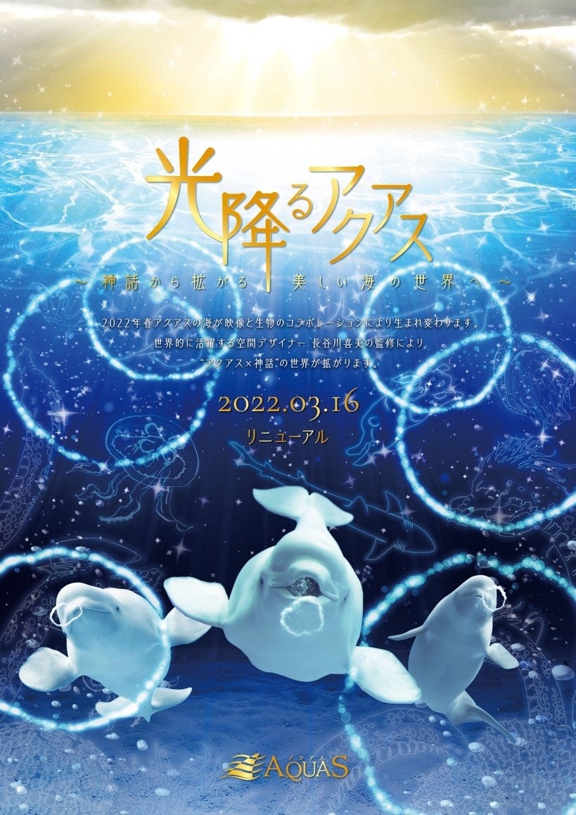 西日本で唯一シロイルカを見られる、しまね海洋館AQUASではこの春プロジェクションマッピングを導入。“光降るアクアス”をテーマに、来館者の心に残る体験をお届けするプロジェクトを企画、2022年3月16日から新たな装いでスタートします。