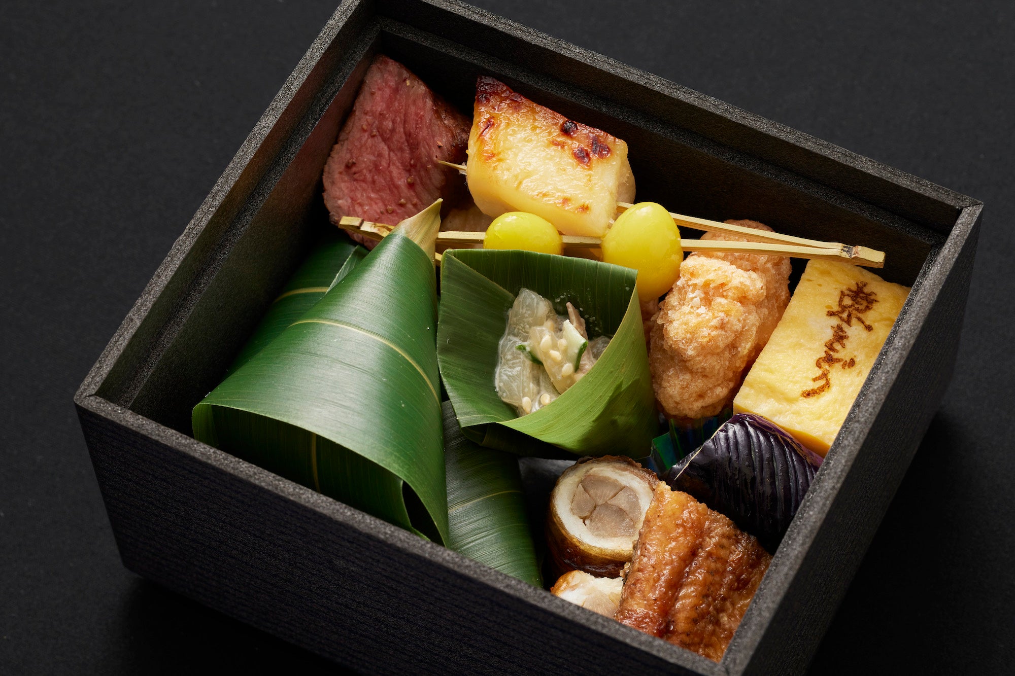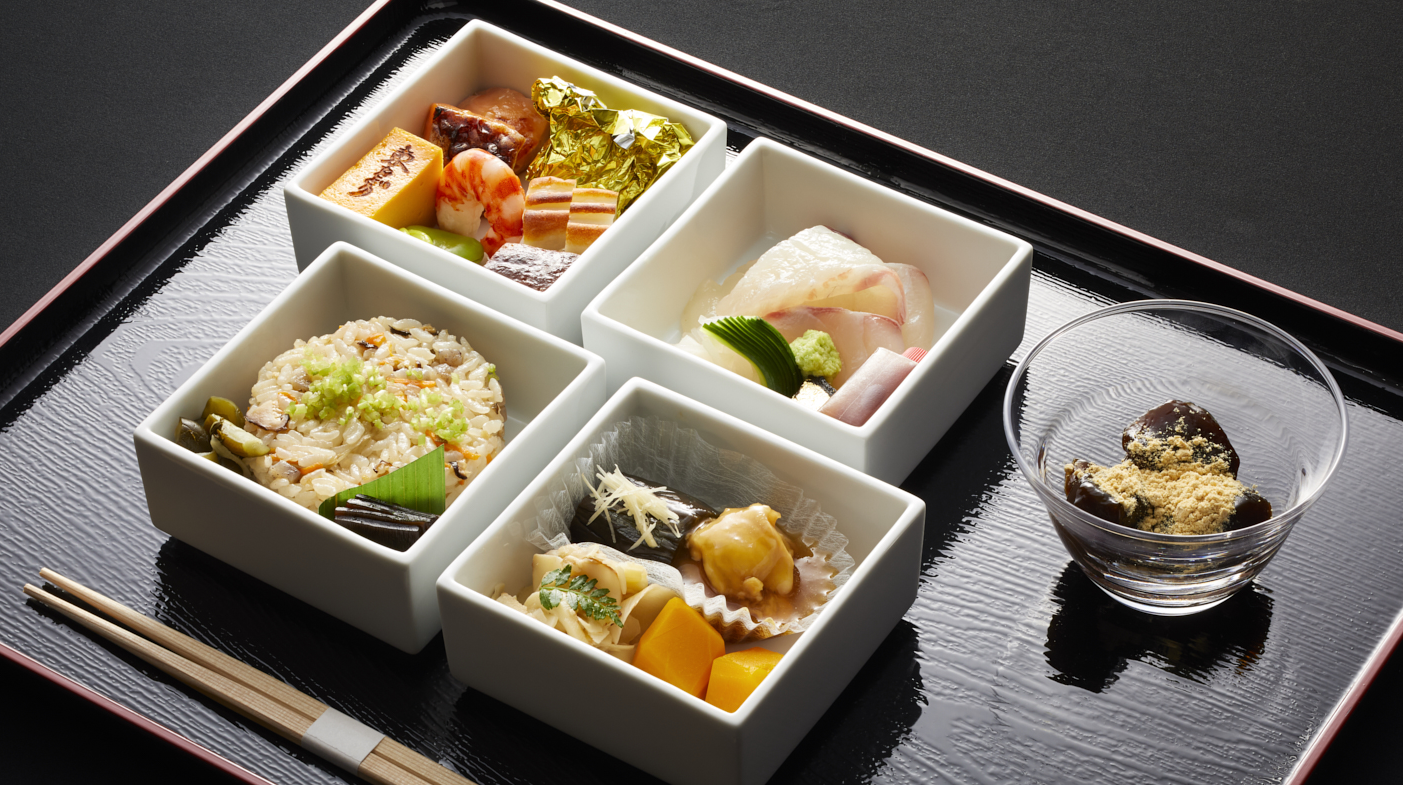 初代が松花堂弁当を考案した東京𠮷兆が提案するひとつの献立を、新橋料亭各軒が、違いを競う陶箱松花堂弁当や、酒肴の折など、料亭の味を楽しめます。極上シャンパンのドン ペリニヨンと、料亭厳選の日本の銘酒、東をどりならでは土産の品々など、趣向を凝らした料亭文化をお愉しみいただけます。