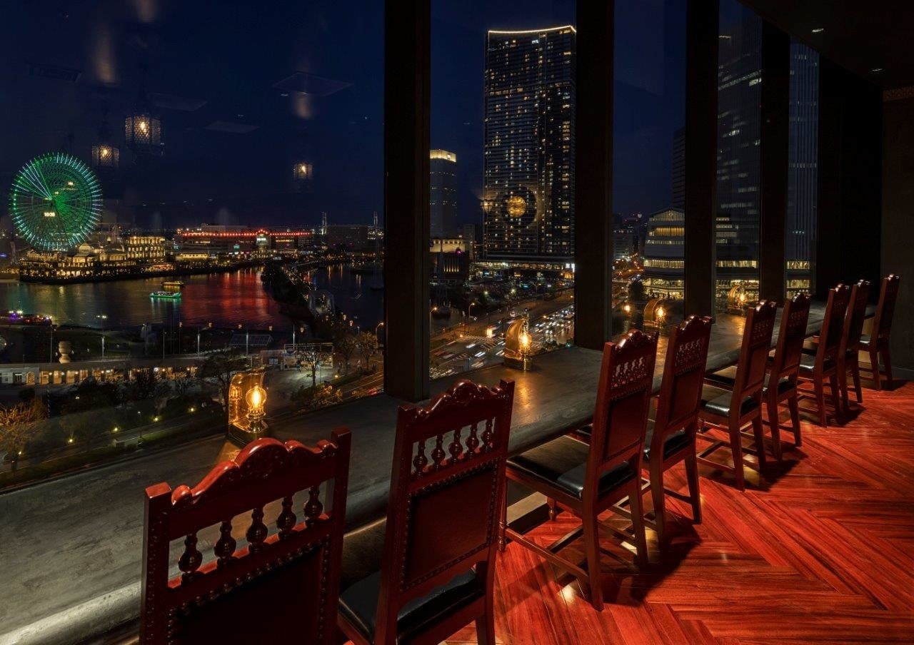 アラビア装飾と明治の文明開化期の洋館を折衷した世界のどこにもない空間と、眼前に広がる圧倒的な港の夜景はまさに非日常の世界。