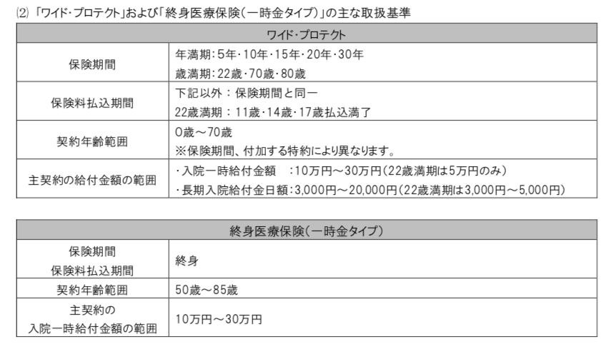 医療保険の新商品「ワイド・プロテクト」の発売等について