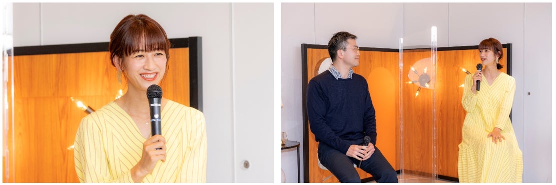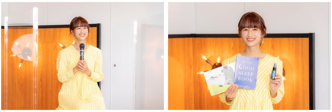 前田さんも経験した海外における睡眠。日本の睡眠と比べてどう異なるのか、椎野は「OECDの調査によると、日本人の平均睡眠時間は世界的に見ても短いという結果が発表されています。やはり『寝る間を惜しんで頑張る』という文化が根強く残っているのかもしれません。また、共働きで子育てをする世帯も多く、特に40~50代の女性の睡眠時間が短いと言われています。そんな中で、当社の調べでは8割以上の人が睡眠の重要性を感じており、また睡眠が日中のパフォーマンスに影響があることを実感しています。しかし、約7割の人が『睡眠の対策ができていない』という結果でした」と日本の睡眠の質の低さについて言及。前田さんは「分かります。睡眠が少ないけど元気な日や、たっぷり寝たのに疲れが取れない日もあって、何の対策もできていませんね」と深く共感した様子を見せました。続けて、椎野は「弊社ではこのような状況を変えたいと考え、『人それぞれに合った最適な睡眠をとることにより、前向きでアクティブな人生を送る』というコンセプトを掲げて、2019年3月に『Active Sleep』というブランドを設立しました。先ほどお伝えしたように、日本では睡眠の質の低さについて注目が集まっています。そこで、睡眠をネガティブに考えるのではなく、工夫を凝らしたベッド空間を体験いただくことで、睡眠をポジティブに楽しんでいただくきっかけになればと思い、今回のイベントを開催しました」とブランド立ち上げや、本イベントの実施背景についてコメント。それに対して、前田さんは「『アクティブ』と付くだけで、眠りをより良く変えていけるような主体性を感じます。イギリスでは、庭にハーブを植えている家庭が多く、それらをドライフラワーにして部屋に吊るすなどしていました。良い香りを嗅ぐと、より眠りが深くなったような気がしましたね。男女問わず花や緑が好きな人が多かったので、植物と結び付けて、生活や暮らしを豊かにしている印象がありました」と、イギリスでの生活を重ね合わせながら話しました。