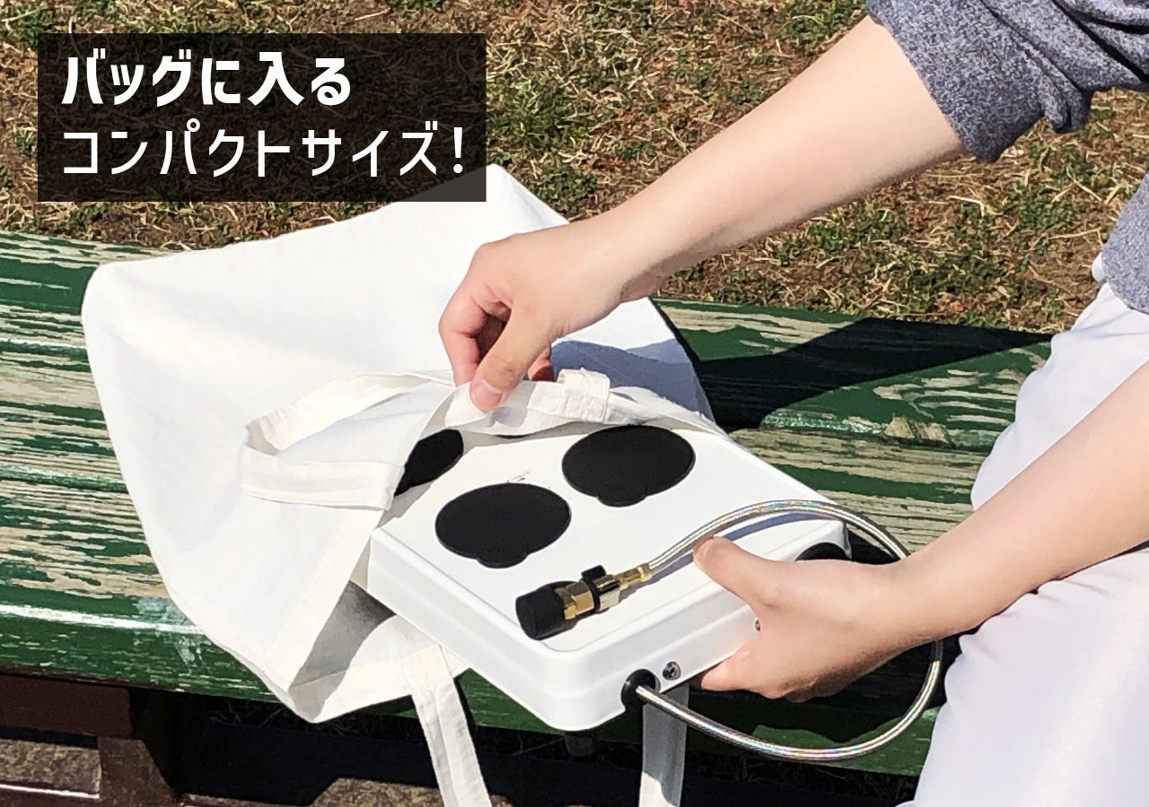 棚などの小さいスペースに収納が可能なコンパクトサイズ!カセットボンベ式だからいざというときでも一発始動できます。