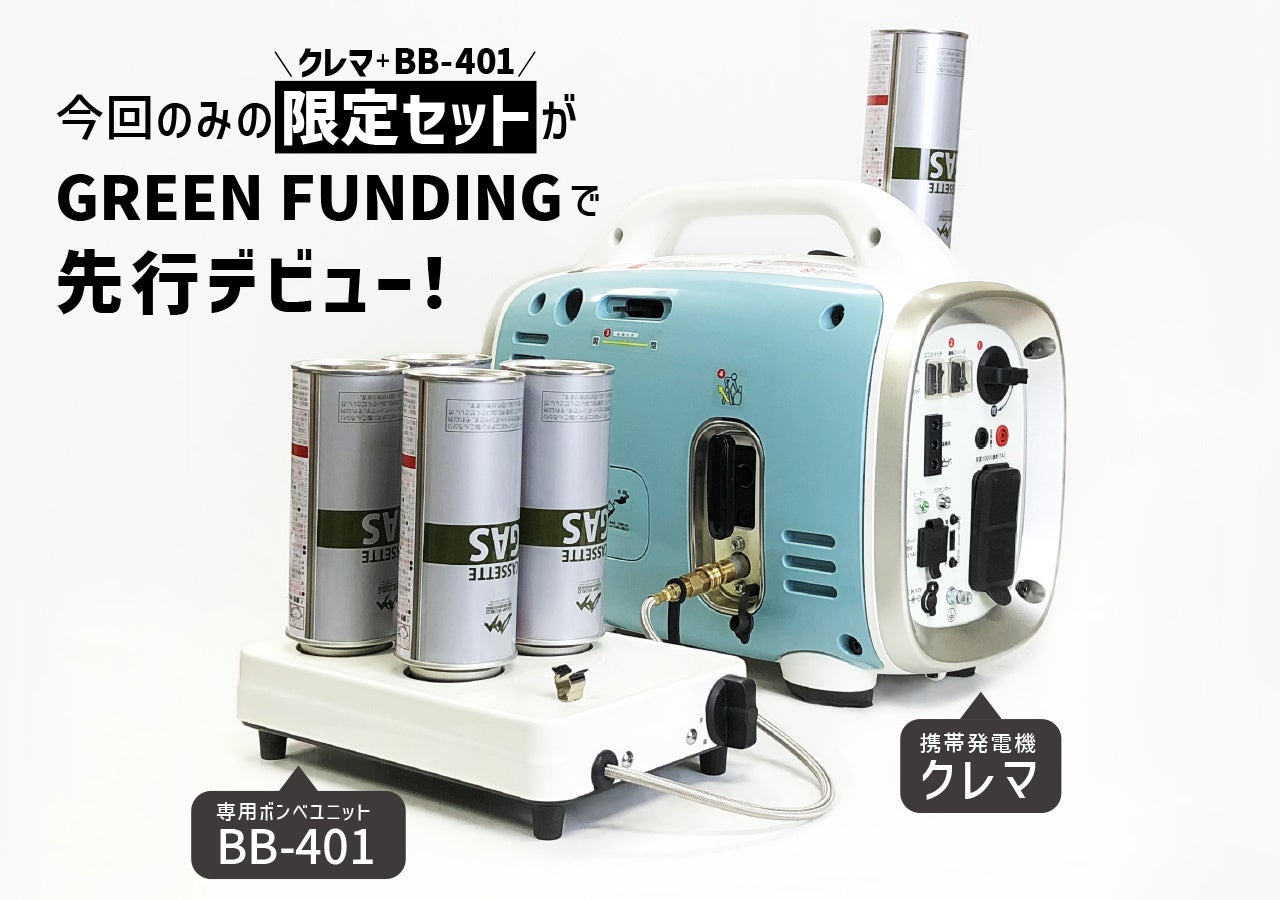 今回のプロジェクトでは、発電機「クレマ」をお持ちでない方にも、「クレマ」とのお得なセットをご用意しています。現在「BB-401」を使用できる機種は「クレマ」のみですが、今後さらに発電機のラインナップが増える予定です。