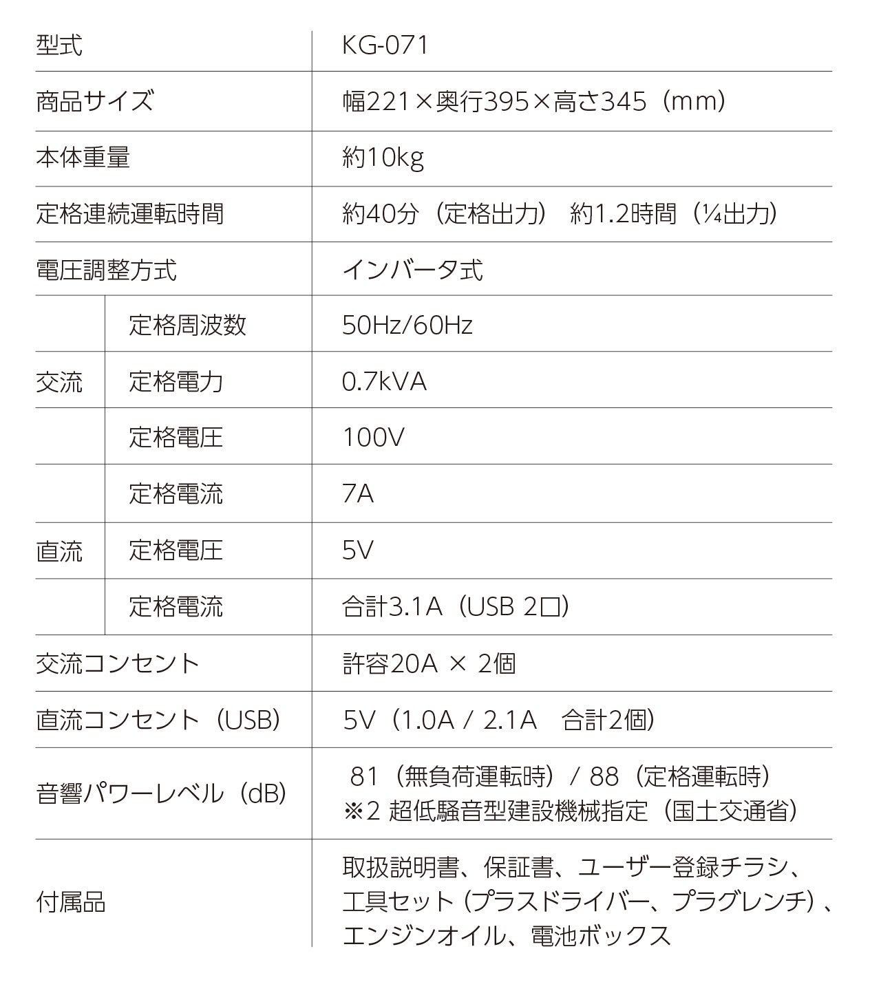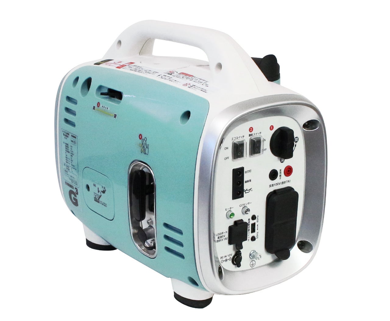 女性でも持ちやすいコンパクトなボディは約10kgと軽量。カセットボンベを燃料としているので利便性も高く、災害などへの備えにも最適です。また、寒冷地でも安心して使えるようにガス気化ヒーターを内蔵。インバータ式なので精密機器にも安心して使用できます。