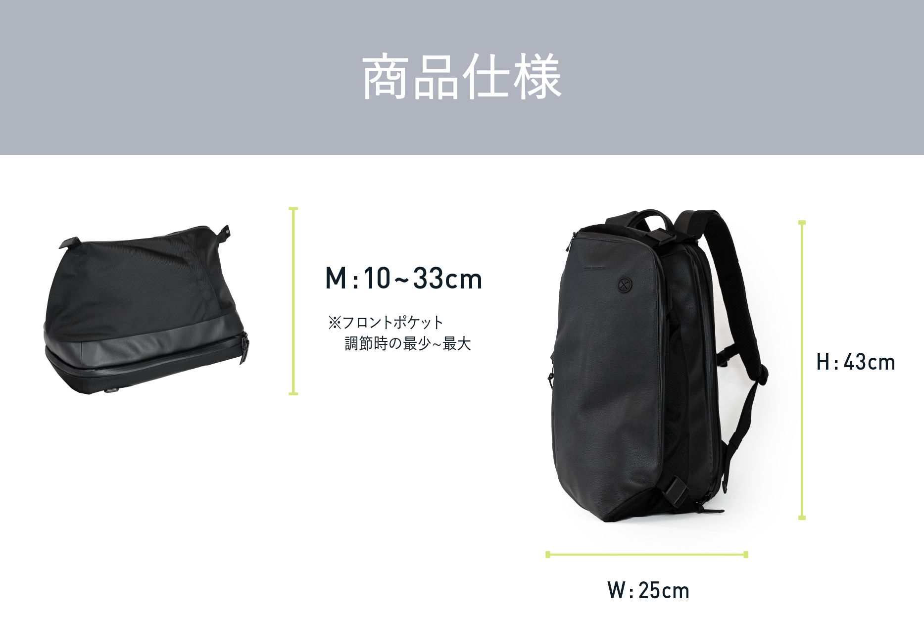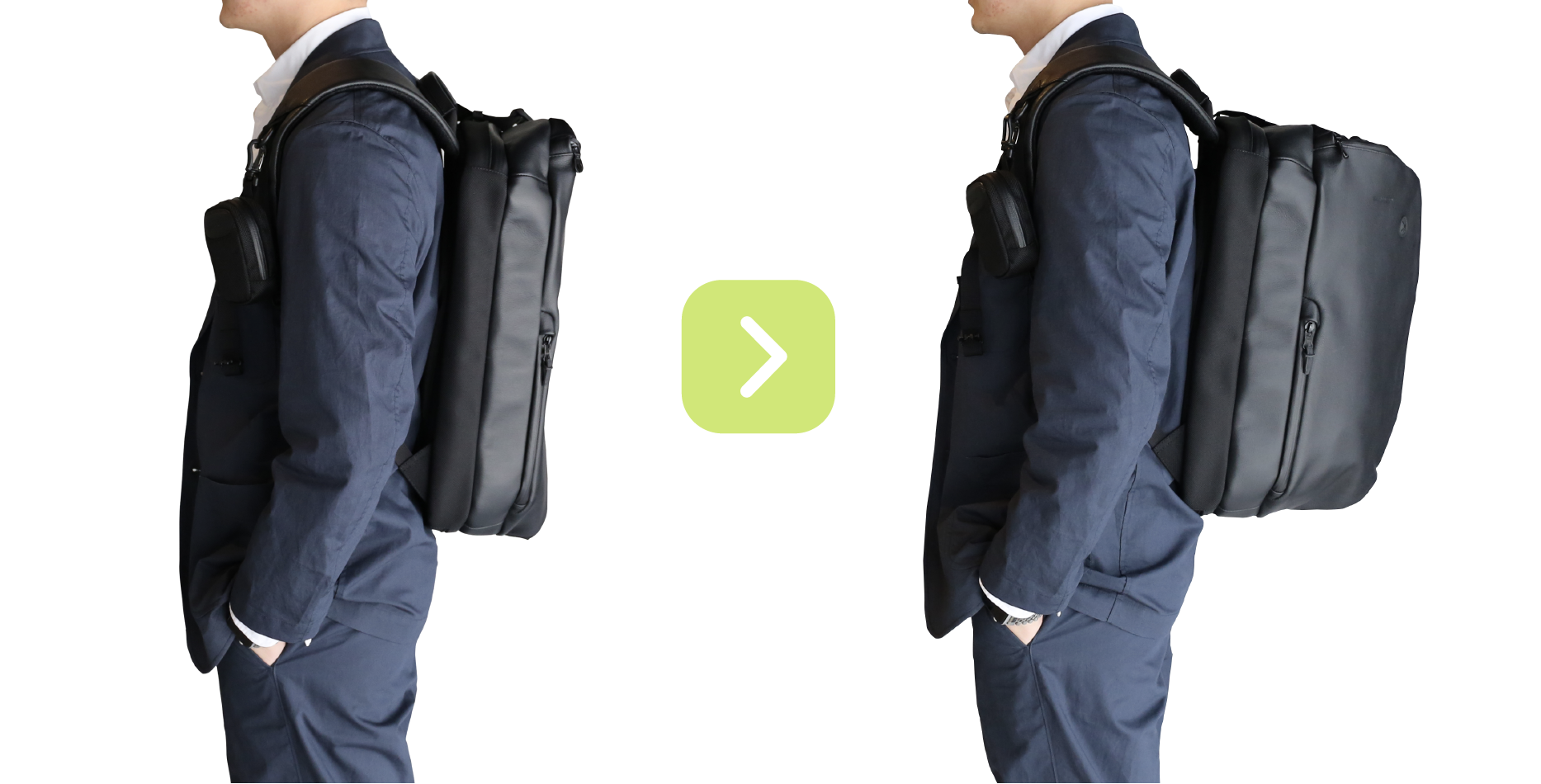 Adjust multi backpackは、収納する荷物の量に合わせて