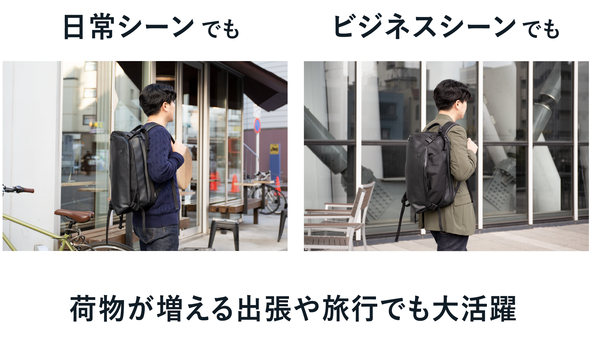 日常から旅行まで雨を気にせずタフに活躍。16インチPCもスッキリ入る拡張型バッグ