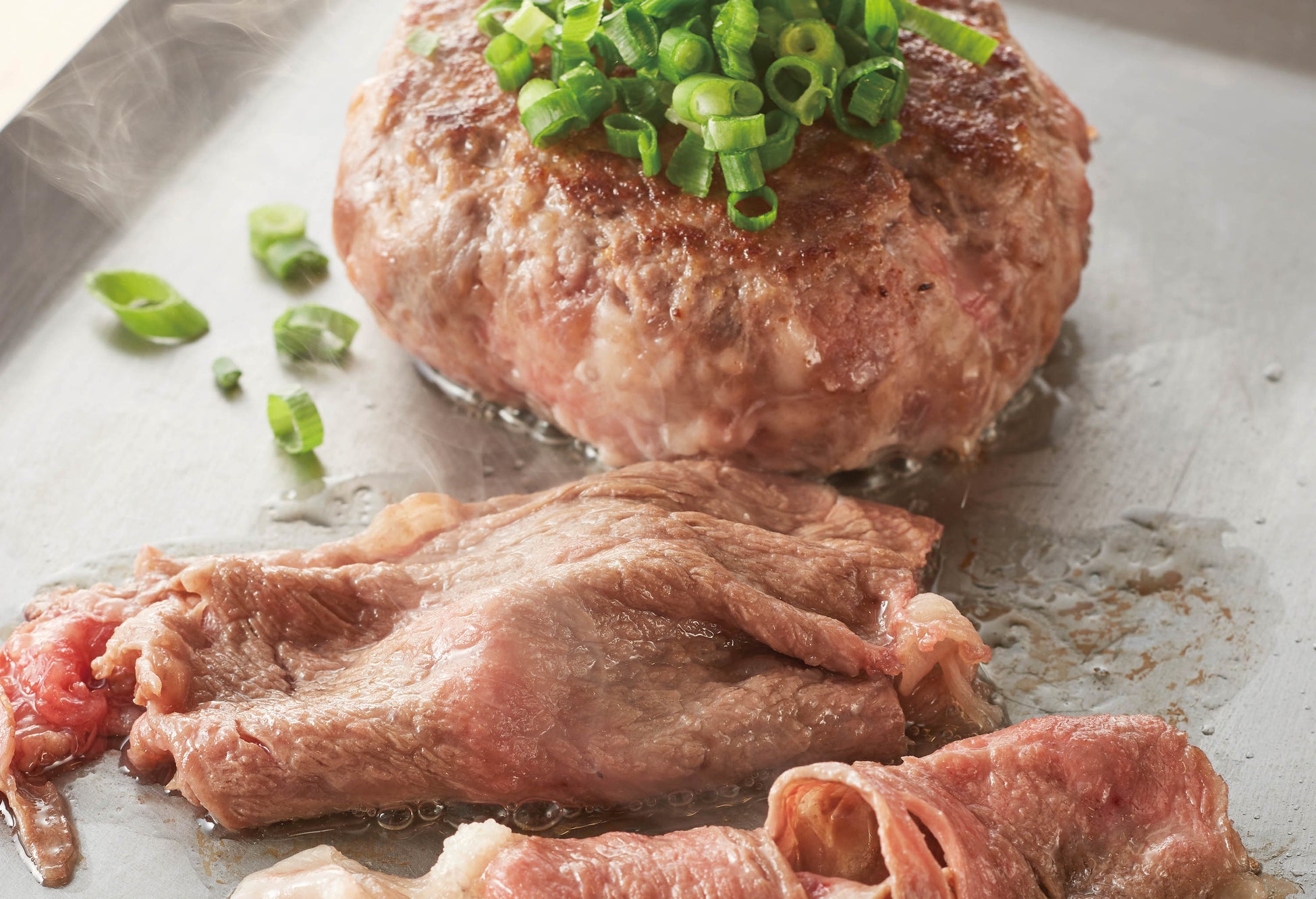 黒毛和牛A5サーロインと黒毛和牛A5ランク100%の特選ハンバーグを一度に堪能できる贅沢なセット。日本が世界に誇る最高級の黒毛和牛を存分に味わっていただけます。