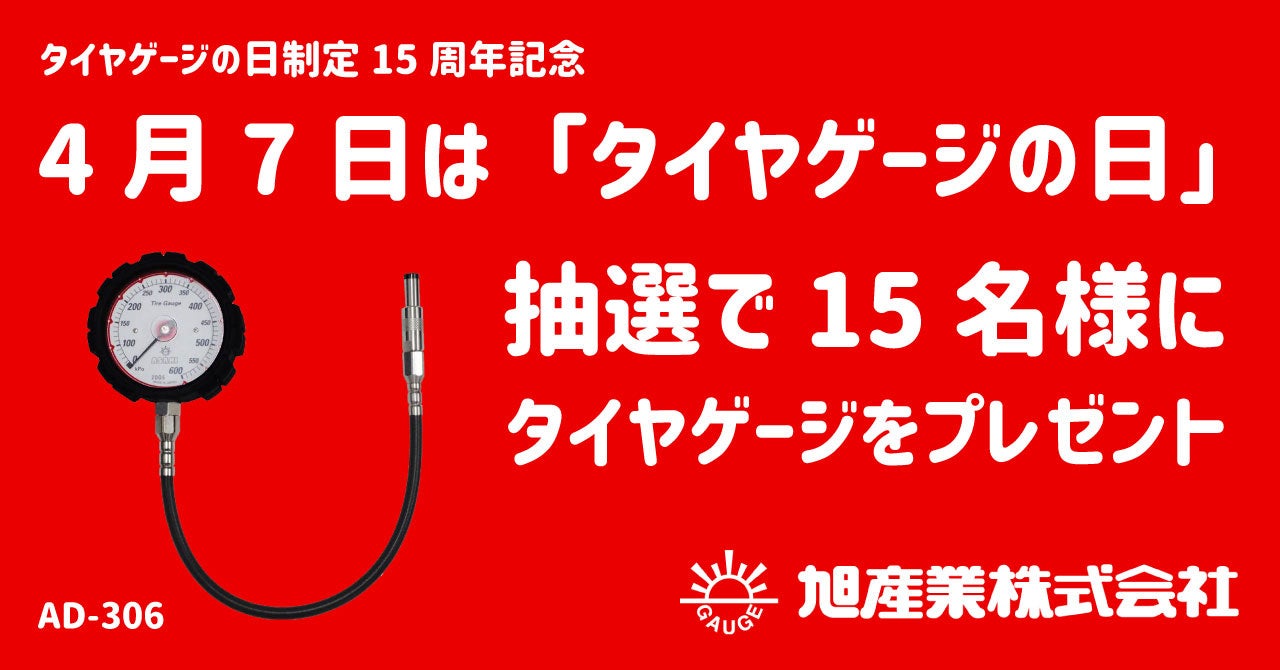 4月7日は「タイヤゲージの日」として旭産業が2007年に制定いたしました。2007年のタイヤゲージの日の制定から今年で15年を迎えたことを記念し、抽選で15名様に「ダイヤルゲージ (AD-306)」(定価2万円相当)が当たるキャンペーンを開催いたします。