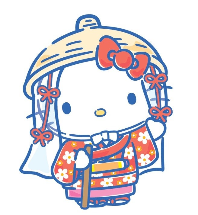 オリジナルデザインのハローキティでは、世界遺産「紀伊山地の霊場と参詣道」の象徴の一つである大門坂で、かつての人々が身にまとったとされる優美な平安衣装を着ています。