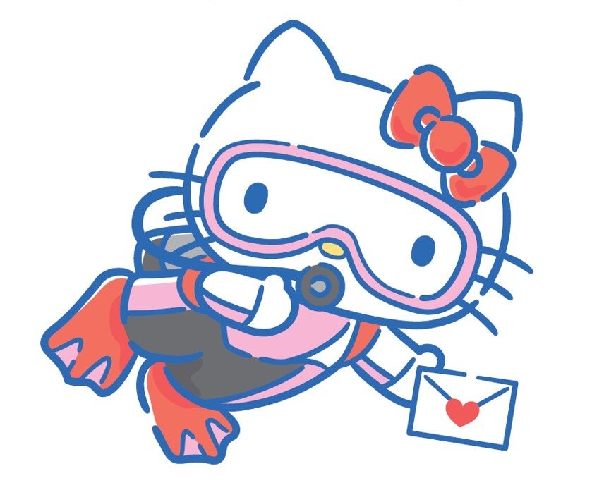 オリジナルデザインのハローキティでは、「世界一深いところにあるポスト」として2002年にギネスブックに認定された海中ポストにお届けしている姿がデザインされています。
