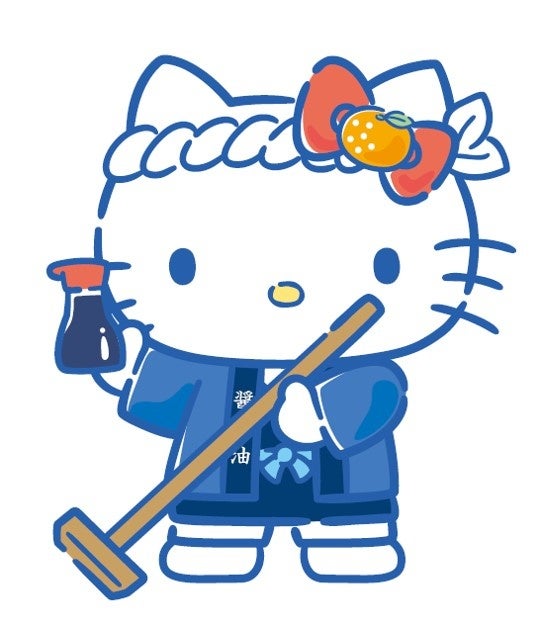 オリジナルデザインのハローキティでは、醤油の醸造家の姿をモチーフにしたデザインをし、リボンの中に有名な有田みかんを入れています。