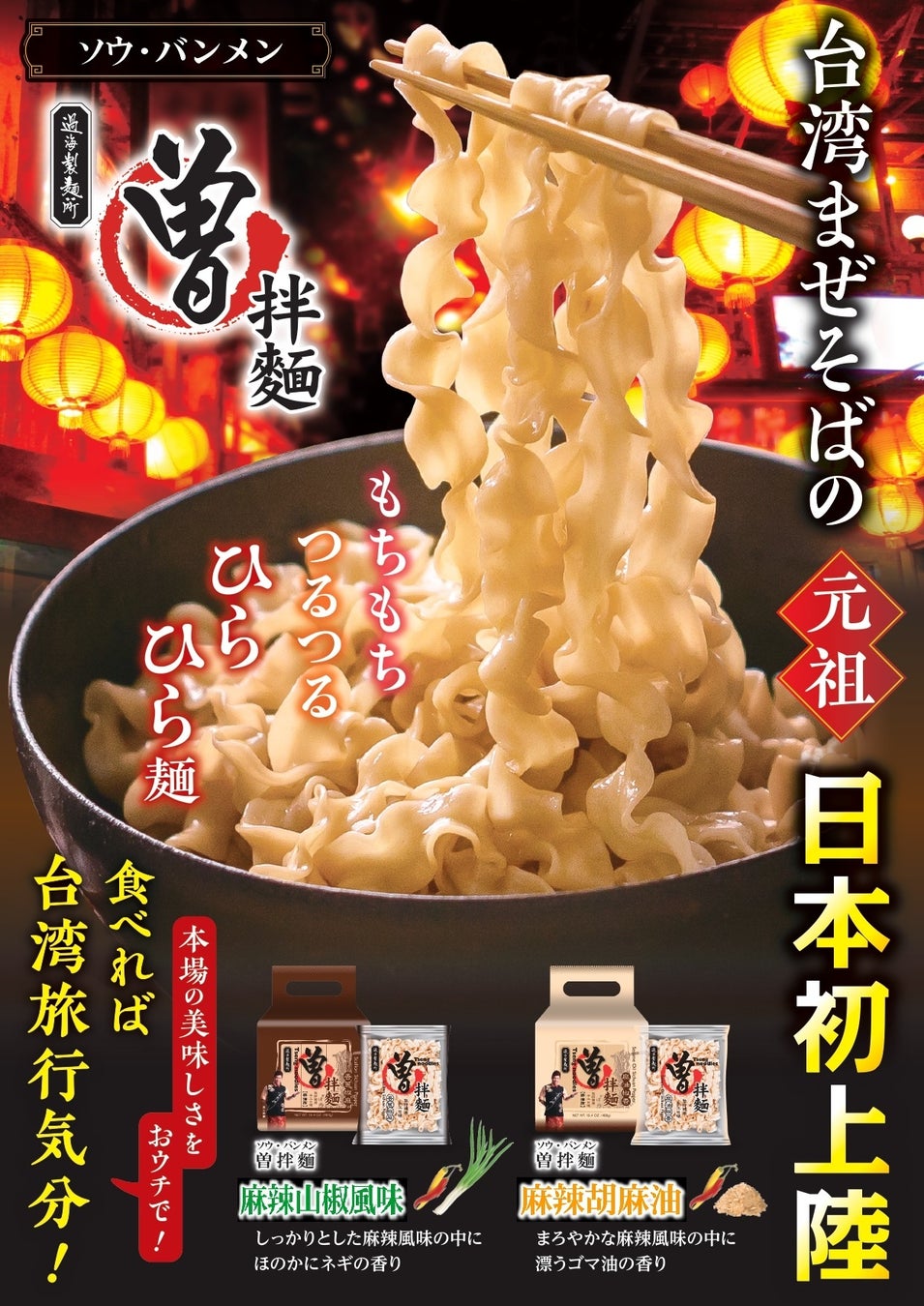 ついに「ホンバモン」が到来!台湾発の袋麺の有名ブランド「曽拌麺」が、日本市場に参入!2022年4月から店頭に。世界中に絶賛された汁なしまぜそばが話題の渦を作り出します。