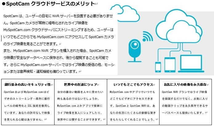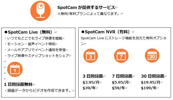 SpotCamが提供するサービス※無料/有料プランによって異なります。