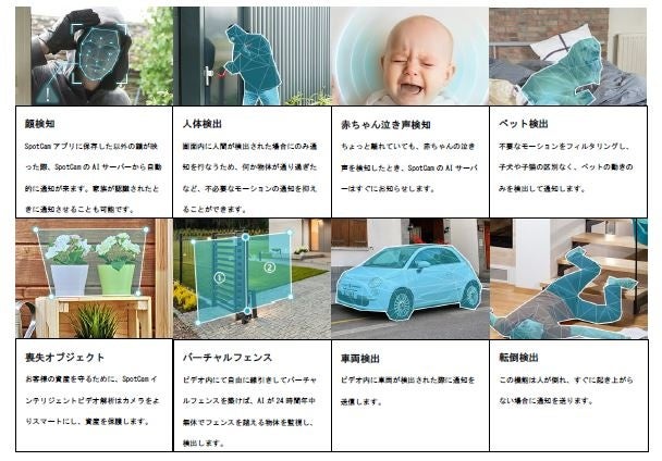 セキュリティを強化して、ご自宅と勤務先の様子をスマートに観察したいと思いませんか? SpotCamクラウドプラットフォームはお客様に代わってビデオを監視して記録するだけでなく、有料オプションのビデオAIサービスは指定されたイベントをアクティブに検出し、携帯端末やメールにて即座に通知します。各種AIサービスを用途に応じて選択することができます。また、AIサービスをまとめたお得なプラン「室内サービスパック」「室外サービスパック」もご用意しています。